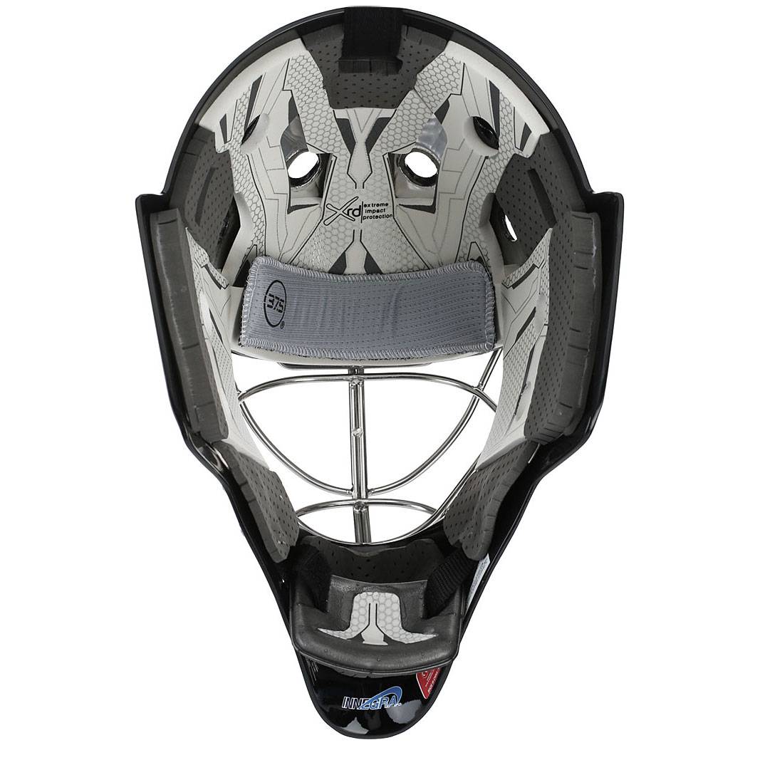 Один из самых лучших вратарских шлемов и самый популярный шлем в NHL. Внешняя оболочка шлема выполнена из стеклопластика плотностью 12К и дополнена усиленной амортизирующей лентой 3М для максимального смягчения ударов шайбой. В качестве внутренней пены используется PORON XRD, которая обеспечивает максимальный комфорт и рассеивает энергию. Подбородник изготовлен из материала PORON XRD