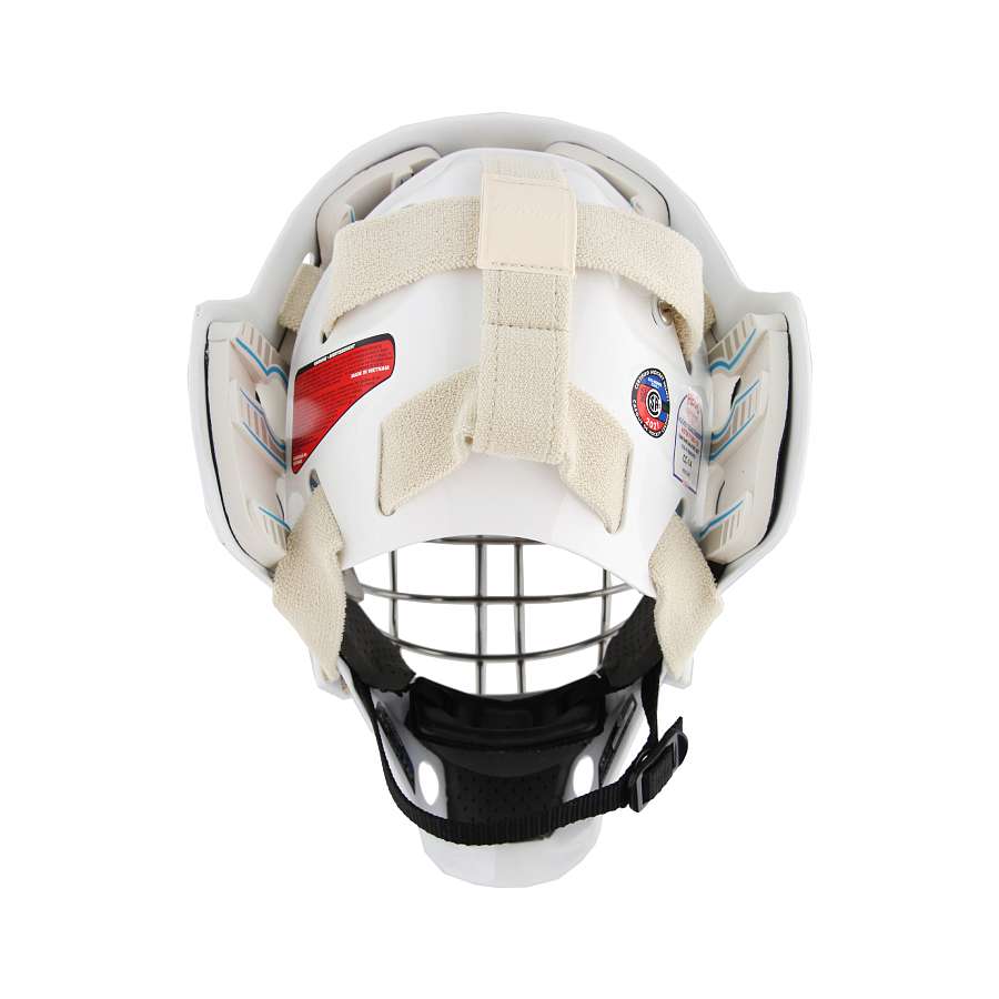 Корпус шлема выполнен из материала FULL FIBERCOMP это легкий и прочный композитный материал, который отличается надежной защитой и долговечностью, а также помогает уменьшить вибрации и звон при попадании шайбы. Внутри шлема используется пена AIRFLOW которая отлично отводит влагу, а также позволяет вратарю сохранять прохладу при использовании этого шлема. Мягкая пена VN хорошо поглощает энергию удара, а накладка из материала THERMOCORE отлично впитывает пот и влагу создавая при этом дополнительный комфорт. На затылочной части шлема присутствует система PRO HARNESS которая позволяет вратарю отрегулировать посадку шлема.