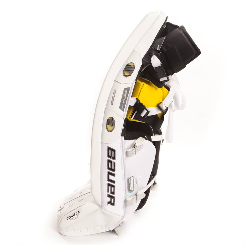 Щитки хоккейного вратаря BAUER SUPREME ONE.9 INT имеют высокий уровень защиты и разработаны на вратарей, играющих в стиле «бабочка». Модель имеет предварительно изогнутую конструкцию Multi-Flex (Soft flex) и плоскую лицевую часть. В данной модели используется система MyFLEX 2.0, которая позволяет подобрать различные варианты гибкость щитков, заменяя вставки из пены различной плотности в точках излома. Внешнее покрытие щитков выполнено из прочной, синтетической кожи, устойчивой к механическим повреждениям. Жесткая пена высокой прочности используется в качестве внутреннего, амортизирующего наполнения в лицевой части щитков. Встроенный элемент защиты бедра перекрывает нижнюю часть трусов, исключая незащищенные участки тела. Боковые протекторы, выполненные из пены LD толщиной 1", обеспечивают максимальный охват голени, надежно защищая ее от ударов. Внутренняя конструкция элемента защиты колена создает максимальную защиту коленного сустава, снижая ударные нагрузки, действующие на колени вратаря при падении на лед. Регулируемая система блокировки колена Adjustable Knee Lock позволяет перемещать на один дюйм (2,5 см) в любом направлении защитный протектор, чтобы подобрать более комфортную плотность посадки. Внутренний канал по всей длине щитка имеет эргономичное строение, выстлан мягкой пеной, которая обладает хорошими амортизационными свойствами. Внутренняя подкладка канала выполнена из износоустойчивого нейлона. Система регулируемых ремней крепления позволяет подобрать плотную и удобную посадку щитков.
