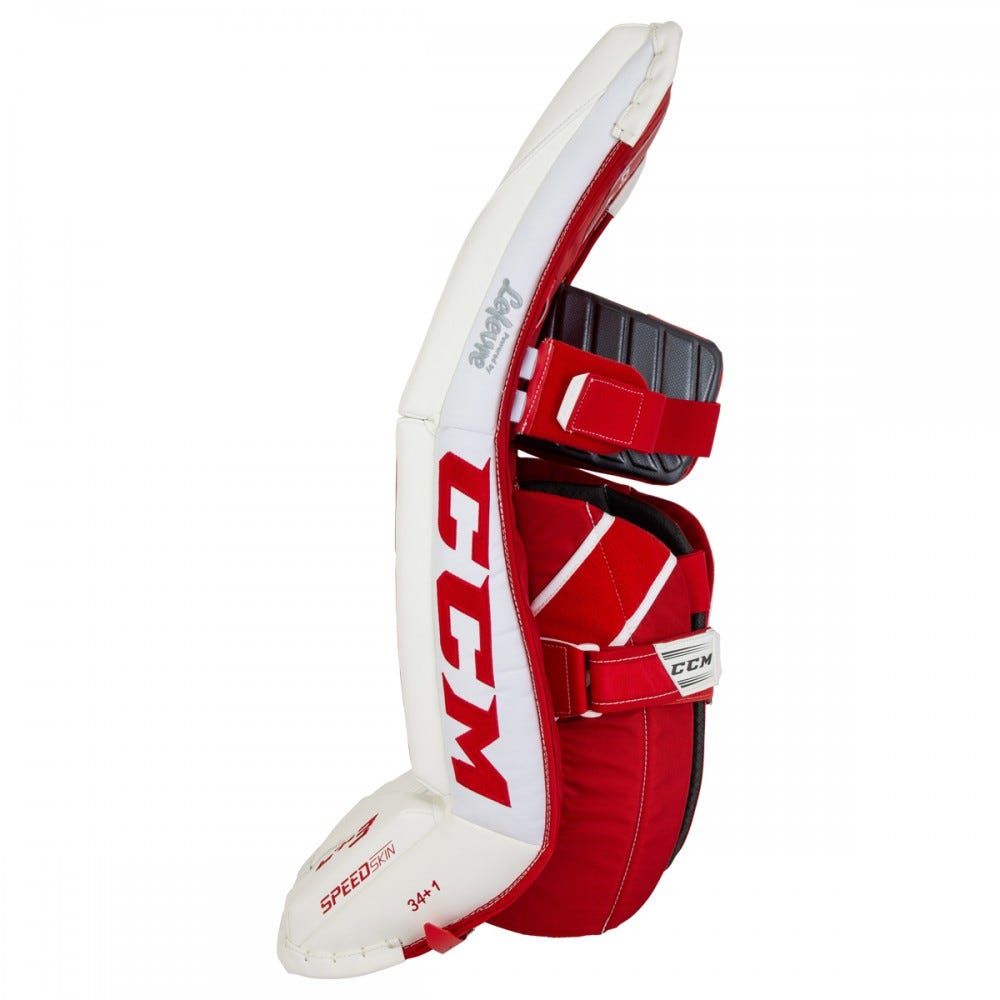 Щитки вратарские полупрофессионального уровня, новинка сезона 2019 года. Щитки обладают отличными игровыми характеристиками, сниженным весом и долговечностью. В данной модели используются не только более легкие материалы, но и щитки обладают отличной сбалансированностью. Высокопрочные материалы внешней отделки и технология SpeedSkin позволяют облегчить скольжение щитка на льду.В качестве внутреннего сердечника во фронтальной части щитка используется легкий материал с технологией DuaLiteCore, который позволяет щитку изгибаться и скручиваться, в результате чего облегчаются движения вратаря, когда он опускается в позицию бабочка. Более жесткая пена в защите бедра и гибкая нижняя часть щитка позволяют вратарю более эффективно и быстро двигаться, предотвращая подъем щитка в области бедра.В защите колена используется вспененный полиэтилен, который является долговечным, легким и упругим материалом, что в свою очередь обеспечивает более мягкую и комфортную посадку. В остальных элементах защиты в данной модели используется легкие пены различной плотности, которые обеспечивают надлежащую защиту.Новая система фиксации Quick Motion Strapping System обеспечивает отзывчивое соединение между ногой вратаря и щитком, которое можно затянуть или ослабить в зависимости от предпочтений вратаря.