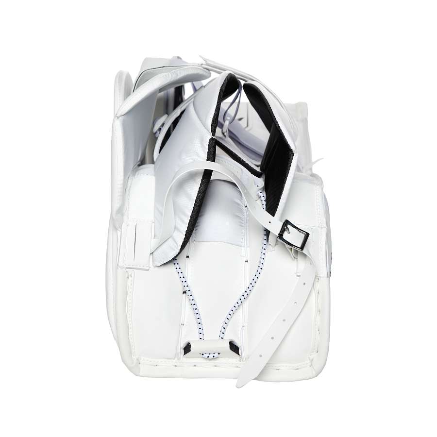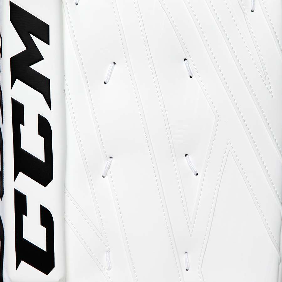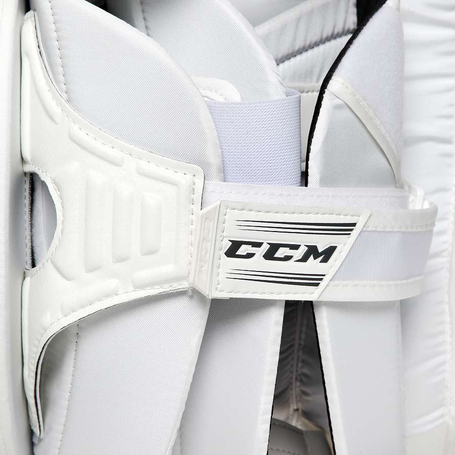 Щитки вратаря CCM GPE4.9 SR имеют анатомическую форму, которая обеспечивает удобную посадку и надежную защиту икроножных мышц. Модель выполнена из высококачественных современных материалов. Технология LiteXCore, которая используется в качестве внутреннего наполнения, обеспечивает легкий вес и надежную защиту. Плоская лицевая поверхность. Удобные, не сковывают движения. Нижняя часть щитка имеет конструкцию на 90 градусов, обеспечивая лучшую гибкость. Система крепления эластичными ремнями позволяет надежно зафиксировать щитки на ногах вратаря, обеспечивая индивидуальную подгонку.