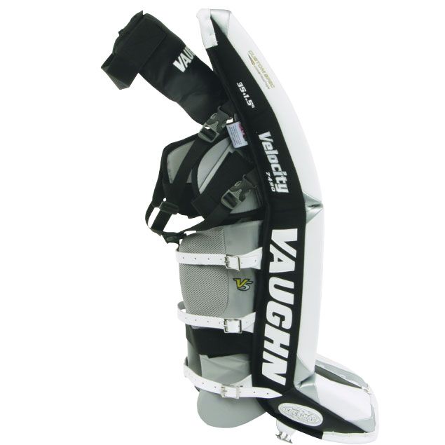 Хоккейные щитки VAUGHN VPG 7490 VELOCITY SR ориентирована специально на вратарей, играющих в профессиональном стиле «бабочка». Данная модель максимально устойчива к порезам и повреждениям. Предварительно изогнута форма щитков, придает модели максимальную подвижность и исключительную гибкость. Внутренняя набивка Flex-Pac, позволяет вратарю легко контролировать отскок шайбы. Фронтальная сторона выполнена с использованием качественного синтетического материала. Внутренняя набивка усилена прочным слоем пеноматериала, который эффективно защищает ноги вратаря, распределяя энергию удара. Литые протекторы защиты бедра регулируются индивидуально по ноге вратаря. Хоккейные щитки имеют специальную жесткую кромку, которая позволяет максимально контролировать шайбу во время игры. Эта модель имеет регулируемые подъемники и дополнительные защитные элементы в зоне колена, которые позволяют регулировать высоту щитка надо льдом и обеспечивают эргономичное положение ног на льду. Инновационные закрылки обеспечивают опоясывающую защиту голени. Надежные крепления позволяют отрегулировать щитки индивидуально по ноге вратаря.
