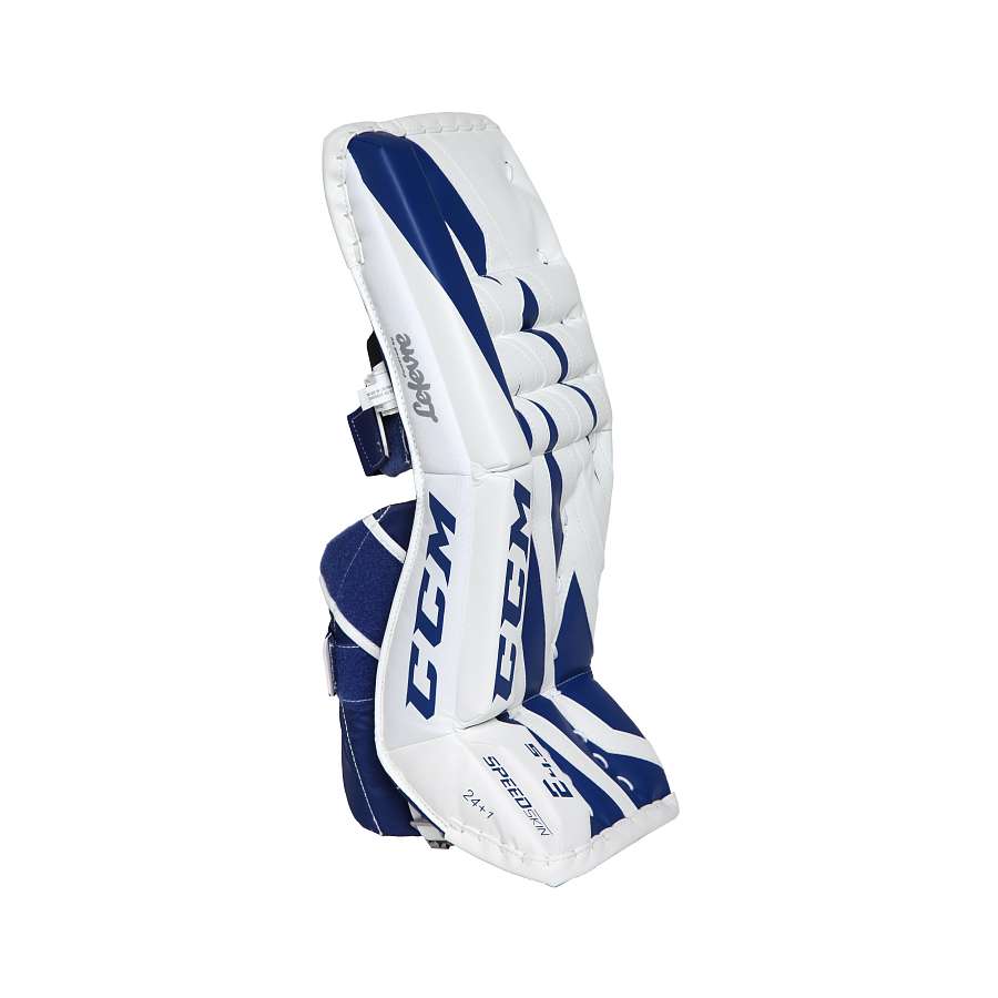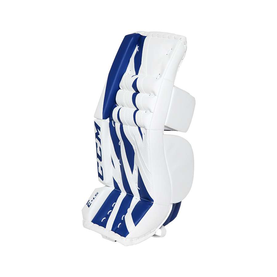 Щитки вратарские являются идеальным вариантом для юных вратарей, которые играют на любительском уровне. Прочный полиуретан с технологией SpeedSkin, используемый во внешней отделки щитков, позволяет щиткам легче скользить на льду. Материалом внутренней отделки является нейлон плотностью 400 Den. В качестве защитного наполнения в данной модели щитков используется вспененный полиэтилен, пена высокой и низкой плотности. Новая технология DuaLiteCore, используемая в данной модели, способствует скручиванию щитка при движении, чтобы облегчить движения вратаря при опускании в позицию бабочка. Конструкция канала для голени и ботинка в данной модели позволяет щитку изгибаться во время игры, как пружина, для облегчения движений вратаря. В щитках ССМ Экстрим Флекс Е4.5 используется новая система фиксации Quick Motion, которая обеспечивает надежную посадку и легкую регулировку, а также позволяет вратарю быстрее перемещаться в позицию бабочки.