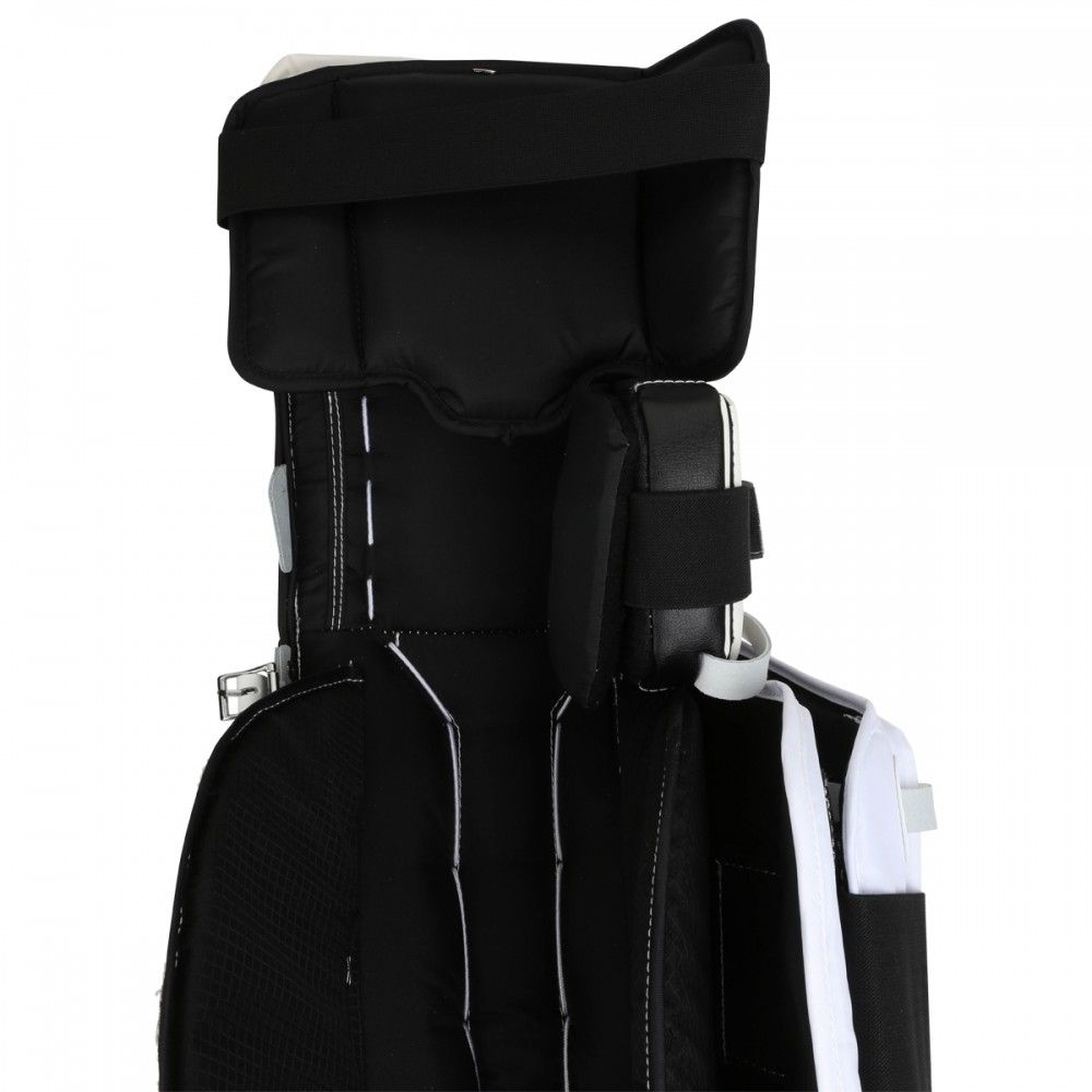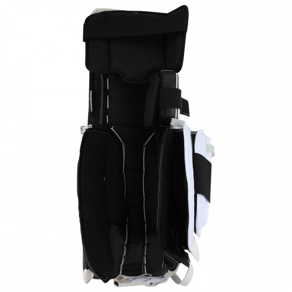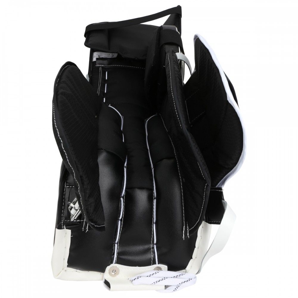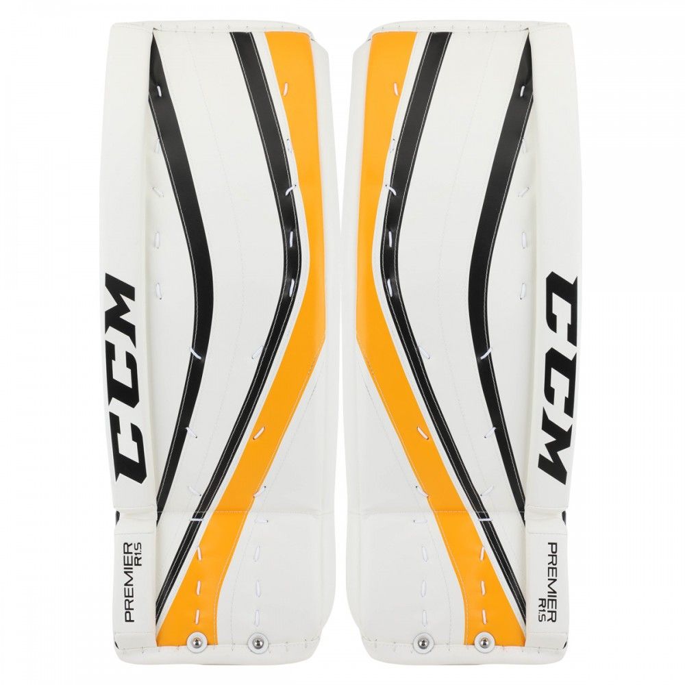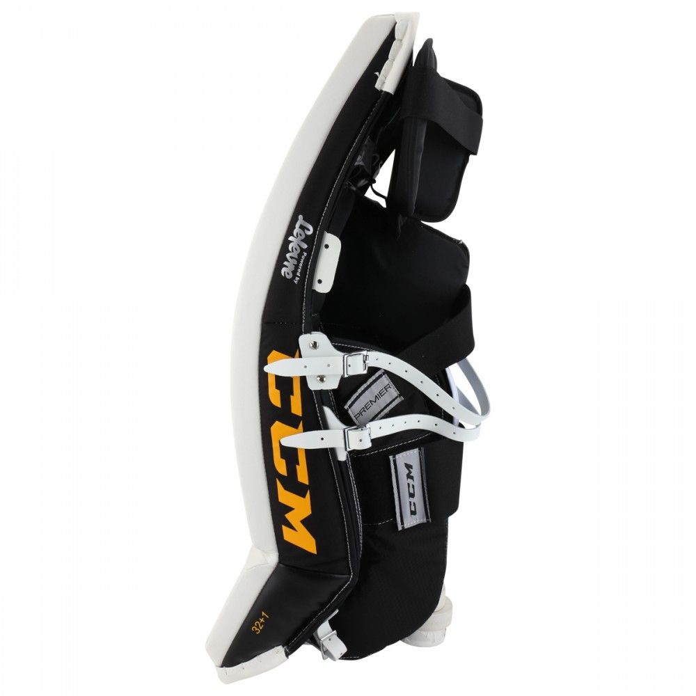 Щитки вратарские CCM PREMIER R1.5 JR юношеская модель – отличный выбор для вратарей, играющих в стиле «бабочка». Внешняя отделка выполнена из прочной, синтетической кожи, которая обеспечивает долговечность щитков. За счет жесткой, фронтальной панели щитки обеспечивают мощный рикошет шайбы, что позволяет вратарю быстро переместиться в положение для потенциального второго отражения бросков. Внутреннее наполнение фронтальной панели отличается высокой жесткостью и выполнено с использованием пены высокой плотности, пены низкой плотности и формованной вставки из пены EPE. Щитки имеют плоскую фронтальную панель без видимых, внешних изломов, за счет чего уменьшается общий вес щитков и обеспечивается предсказуемый отскок шайбы. Один внутренний излом ниже колена придает щиткам отличную гибкость, при этом выше колена щиток сохраняет свою жесткость. Такая конструкция улучшает сбалансированность щитка при опускании в позицию «бабочка». Щитки имеют плоскую, внутреннюю конструкцию кромок, где вспененный материал канала для ноги соединяется со льдом, что способствует более плотному прилеганию щитка ко льду и уменьшает «спекание» льда, которое происходит при скольжении щитков, снижая эффективность этого скольжения. Элемент защиты бедра имеет съемную, регулируемую конструкцию. Защитные элементы, удерживающие колено и способствующие снижению нагрузки на коленный сустав, выполнены из вспененного полиэтилена. В области посадочного места под колено в качестве подкладки используется синтетический материал Nash толщиной 1,3 мм, обладающий высокой прочностью, не поглощающий влагу и обеспечивающий отличное сцепление, удерживая колено в посадочном месте. Элемент, закрывающий икроножную мышцу, имеет оптимизированную конструкцию и выполнен из мягкой пены, что снижает силу трения при опускании в позицию «бабочка». Канал для ноги имеет тонкий профиль, позволяя опускаться глубже при занятии позиции «бабочка». Мелкий, мягкий канал для ботинок улучшает переход в позицию «бабочка». Переработанная система крепления позволяет надежно зафиксировать щитки на ногах вратаря.