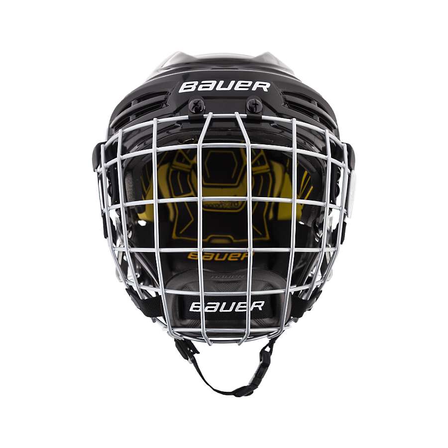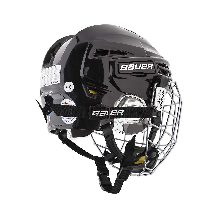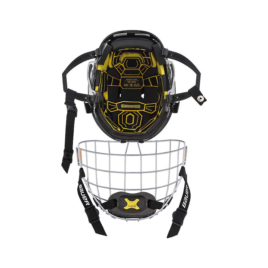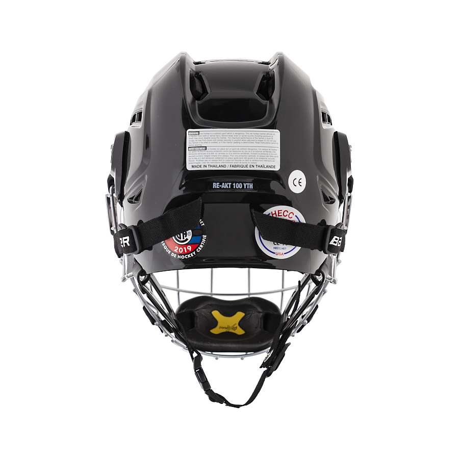 Шлем BAUER RE-AKT 100 YTH детская модель отличается легкой конструкцией и обеспечивает высокий уровень защиты. Ударопрочный корпус состоит из двух частей, смещающихся относительно друг друга, и имеет возможность регулировки плотности посадки без использования дополнительного инструмента за счет регулируемых затылочных упоров Spring-loaded Occipital Lock. Приток воздуха к голове и эффективный отвод тепла обеспечивают вентиляционные отверстия, имеющиеся в корпусе шлема. Внутреннее амортизирующее наполнение выполнено из пены тройной плотности. Специальная система защиты Suspend-Tech позволяет уменьшить вращательную силу при ударах по касательной, гарантируя эффективную защиту. Плавающая накладка, выполненная из пены Poron XRD, при ударе остается неподвижной, в то время как корпус шлема с амортизирующим наполнением смещается относительно головы на небольшой угол, рассеивая энергию удара. Прозрачный элемент, изготовленный из пластика и имеющий прорезиненное покрытие, обеспечивает надежную защиту ушной раковины. Возникновение неприятных запахов в процессе использования шлема предотвращает использование антибактериальной пропитки Microban. В области лба расположена дополнительная, влагопоглощающая прокладка, которая исключает попадание влаги в глаза. Ремешок под подбородком разработан специально для младших игроков и имеет возможность быстро затягиваться, фиксируя шлем на голове игрока. На шлем можно установить маску. Данная модель сертифицирована HECC, CSA и отвечает требованиям безопасности стандарта CE.