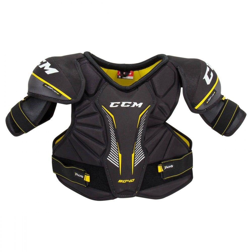 Нагрудник хоккейный CCM TACKS 9040 YTH (детская модель) предназначен для начинающих игроков. Нагрудник оснащен мобильной трех секционной передней панелью, обеспечивая лучший охват и эффективную защиту жизненно важных областей тела. Защиту грудины обеспечивает плавающий, усиленный щиток. Защита позвоночника обеспечивается плавающей, усиленной вставкой. Боковые панели, как на фронтальной панели, так и на задней, выполнены из пены средней плотности, которая хорошо справляется с рассеиванием энергии удара. Плечевые чаши из формованного пластика анатомической формы выполнены с применением технологии Joint Dispersion Protection (JDP), которая позволяет перераспределять силу удара, уменьшая его воздействие на суставы. Кроме того плечевые чаши имеют дополнительный армирующий слой из пены, как на внешней стороне, так и внутри, что позволяет лучше рассеивать