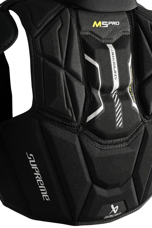 Нагрудник этой линейки имеет особенности посадки AMP, а также поставляется с ЗАЩИТОЙ БИЦЕПСА ОТ РУБЯЩИХ УДАРОВ. Используемые пены и щиток CURV COMPOSITE в области грудины гарантируют нагруднику M5 PRO характеристики защиты профессионального уровня. В активе модели M5 PRO также ПОДКЛАДКА THERMO MAX PLUS, способная отводить пот, обеспечивая спортсмену ощущение прохлады во время игры, и имеющая специальное покрытие для уменьшения распространения микробов.
