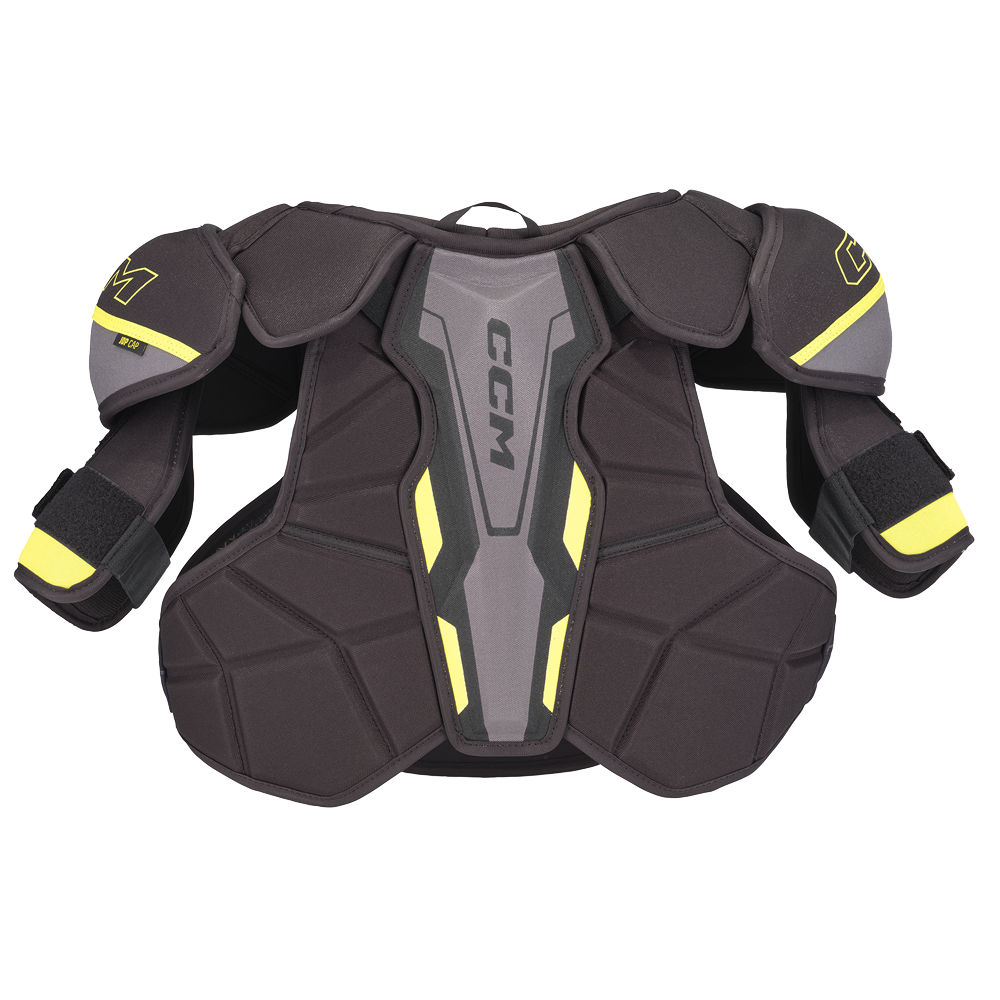 Новинка 2024 года от компании CCM – JETSPEED TACKS XF80. Новая конструкция нагрудника создает комфортные условия на льду без потери качеств в защите. Обновленные элементы защиты и дизайна позволят вам максимально сосредоточиться на игре забыв про дискомфорт во время игры.