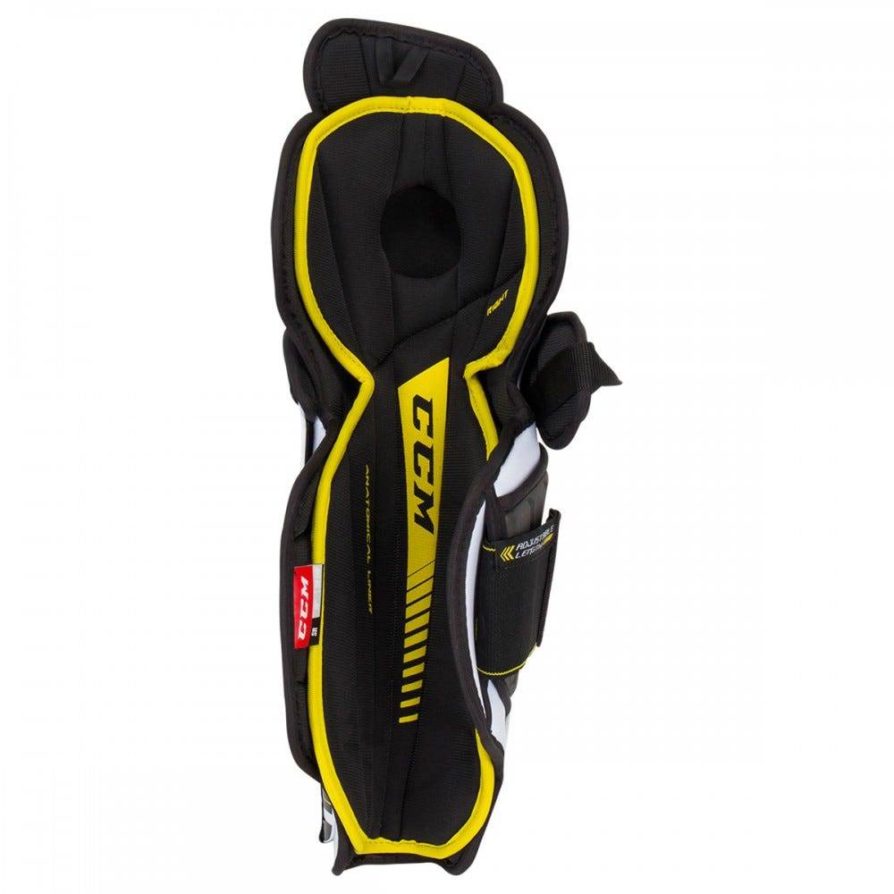 Щитки хоккейные CCM TACKS 9060 JR юношеская модель полупрофессионального уровня с традиционной посадкой, которая позволяет получить максимальный охват и отличную защиту. Пластиковый корпус щитков имеет ребристый дизайн, что способствует лучшему рассеиванию силы удара и придает щитку дополнительную пространственную жесткость. Коленная чаша имеет конструкцию Joint Dispersion Protection (JDP), которая способствует перераспределению силы удара, уменьшая ее воздействие на коленный сустав. Для защиты икроножных мышц используются элементы, выполненные из пластиковой вставки, которая покрыта прессованной, формованной пеной. Внутренний вкладыш, отлично отводящий влагу, может удаляться при необходимости для стирки и для более быстрой сушки после игры. Вкладыш имеет анатомическое, сегментированное строение, в результате чего обеспечивается удобная посадка и более плотное прилегание щитка к ноге. Посадочное место под коленный сустав во вкладыше обеспечивает более удобную посадку. Щитки фиксируются на ногах с помощью двух ремней.