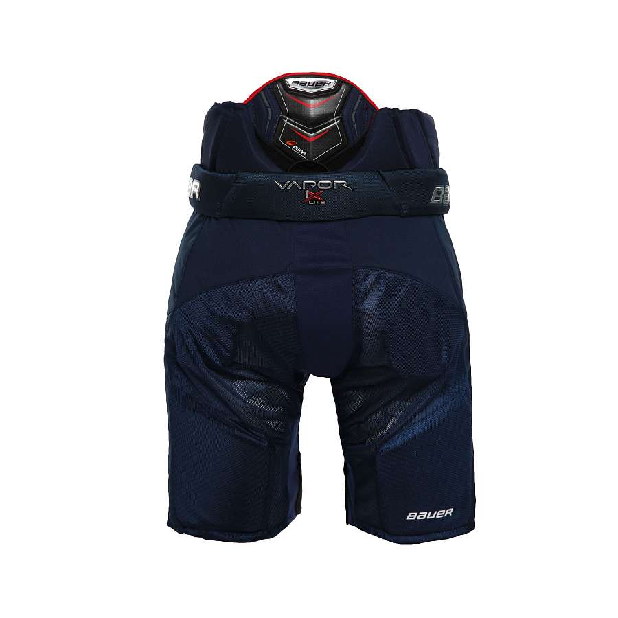 Трусы хоккейные BAUER VAPOR 1X LITE S18 SR флагманская модель в линейке Vapor, новинка сезона 2018 года. Вес трусов снижен на 20% по сравнению с предыдущей моделью благодаря использованию в конструкции облегченных материалов и усовершенствованных технологий. Модель имеет высокопрочный чехол, выполненный из нейлона профессионального уровня плотностью 840 Den. Эластичные, сетчатые вставки в чехле создают отличную циркуляцию воздуха и позволяют защитному снаряжению двигаться вместе с телом игрока. Элемент защиты позвоночника имеет независимую, подвижную конструкцию Free Flex и выполнен с использованием композитного материала Curv. Область почек защищена завышенным элементом, в котором в качестве амортизирующего наполнения используется пена HyperLite. Тазобедренные суставы защищены элементами, выполненными из нового поколения легкой пены Aerolite 2.0. Набедренные щитки выполнены из пены высокой плотности HyperLite и обеспечивают максимальное покрытие бедра.