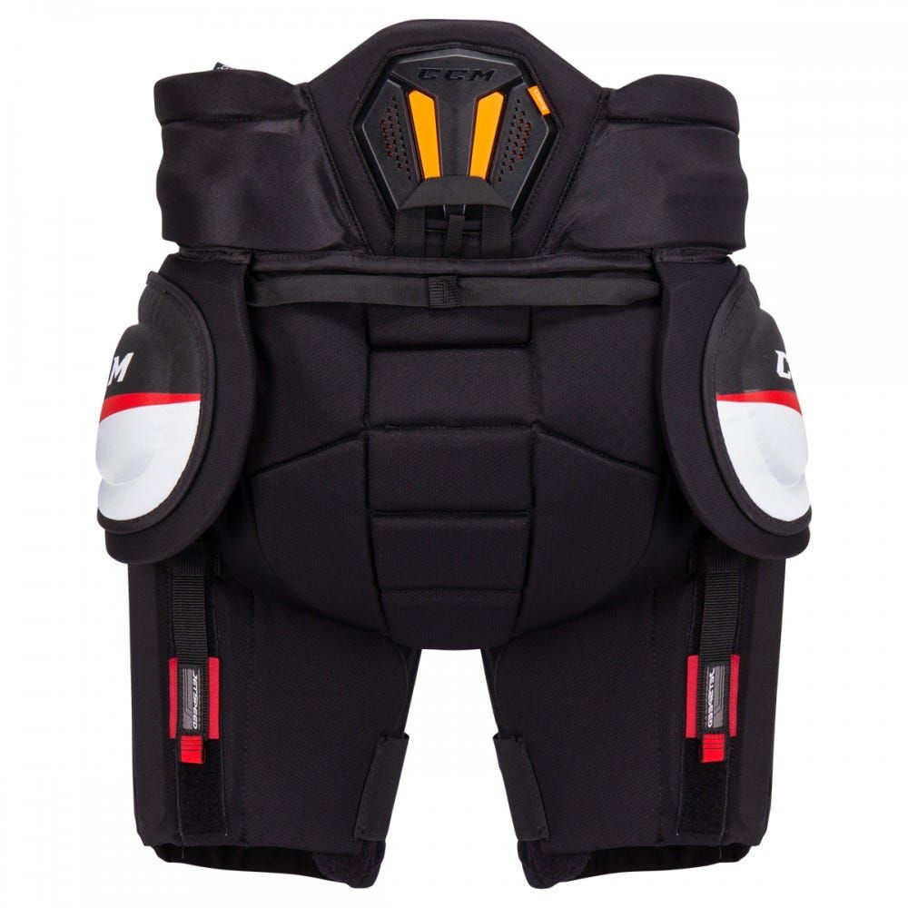 Профессиональные хоккейные шорты CCM PG JETSPEED SR (взрослые). Шорты обеспечивает надежную защиту от ударов и порезов во время игры и тренировки. Плавающая часть, которая отвечает за защиту позвоночника, выполнена из материала D3O. Защита бедра регулируется по горизонтали и вертикали. Пластиковые вставки, покрытые пеной средней плотности обеспечивают защиту копчика. Защита тазобедренных суставов выполнена по технологии JDP с пеной D3O. Многослойная конструкция из пены высокой и средней плотности надежно защищает бедра. Удобная посадка позволяет максимально точно подогнать шорты по фигуре.