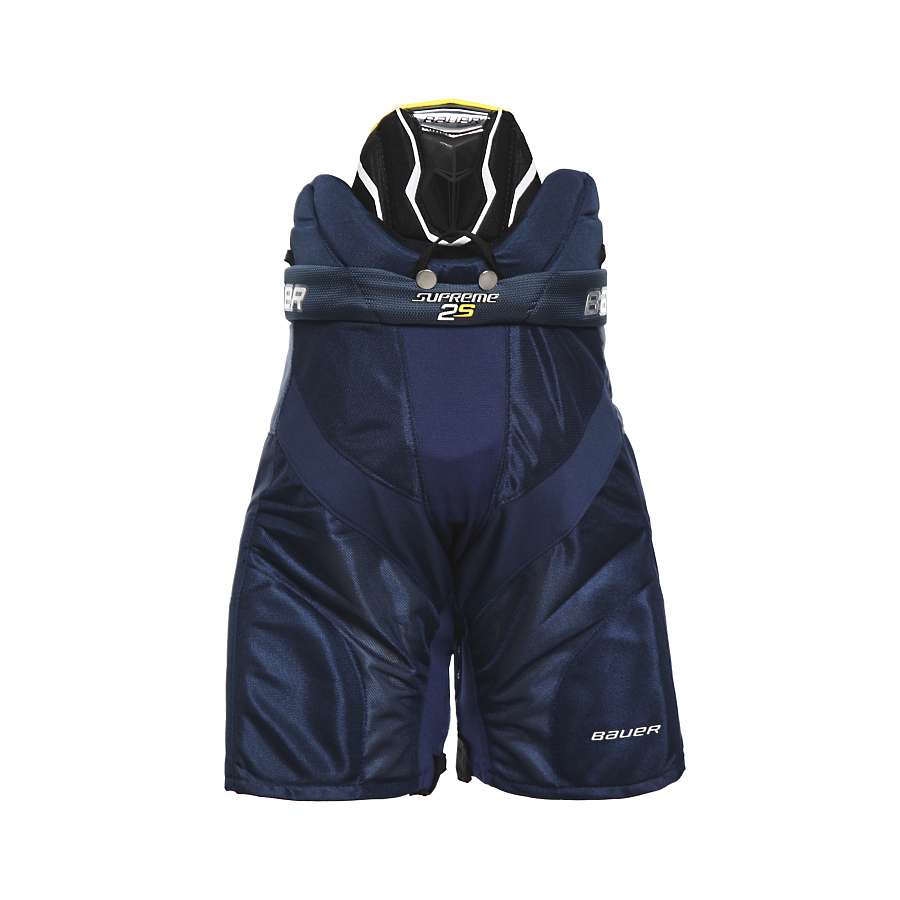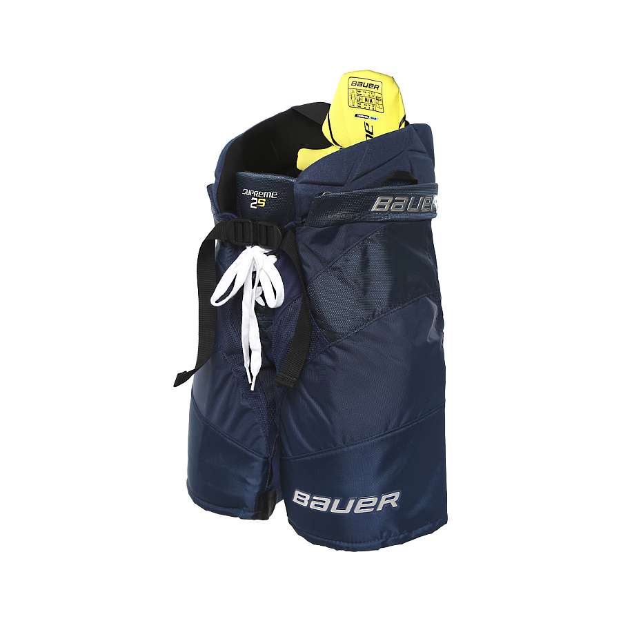 Трусы хоккейные BAUER SUPREME 2S S19 JR юношеская модель создана для профессиональных игроков, которым требуется максимальный охват, эффективная защита и мобильность. Трусы имеют традиционную посадку. Чехол трусов изготовлен из высокопрочного нейлона плотностью 820 Den, который отлично противостоит износу, сохраняя при этом хорошую воздухопроницаемость. Вентилируемые сетчатые вставки спереди и сзади улучшают воздухопроницаемость и циркуляцию воздуха. Кроме того в чехле имеются эластичные вставки, которые проходят через центр чехла трусов и по внутренней стороне штанин, позволяя увеличивать ширину шага. Область почек закрывается завышенными элементами, выполненными из формованного пластика, покрытого пеной средней плотности. Для защиты позвоночника используется пена высокой плотности, усиленная формованной пластиковой вставкой. Защита копчика имеет многослойное, сегментированное строение и выполнена из мягкой пены низкой плотности, пены IX Foam и пластиковых вкладок.