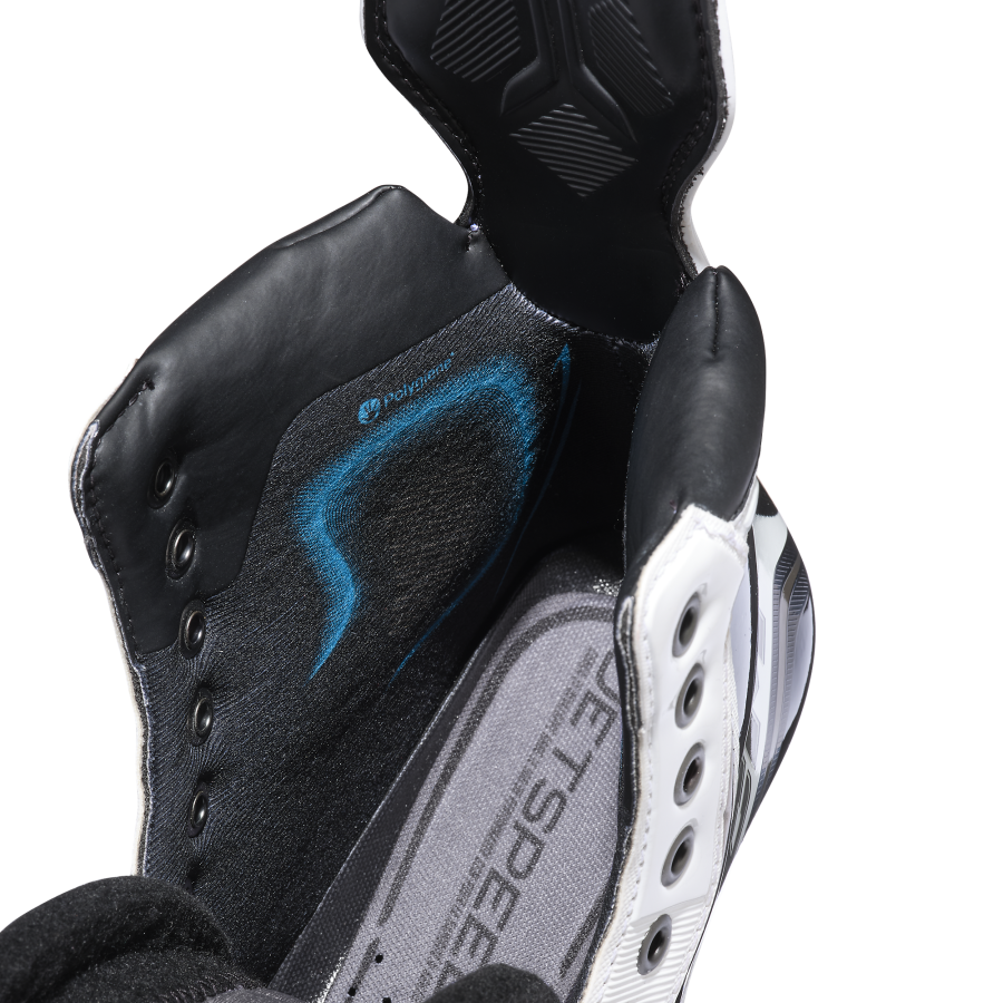 Сверхлёгкая, жёсткая термоформуемая сердцевина обеспечивает выдающуюся манёвренность на льду, жёсткость, поддержку стопы и безопасность на высшем уровне.