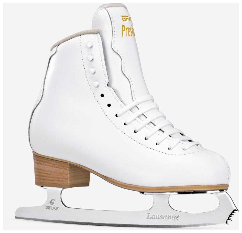 Ботинки для фигурного катания GRAF Prestige. Модель предназначена для фигуристов среднего уровня катания. Ботинки средней жесткости. Подходят для исполнения/изучения двойных прыжков и других элементов фигурного катания.