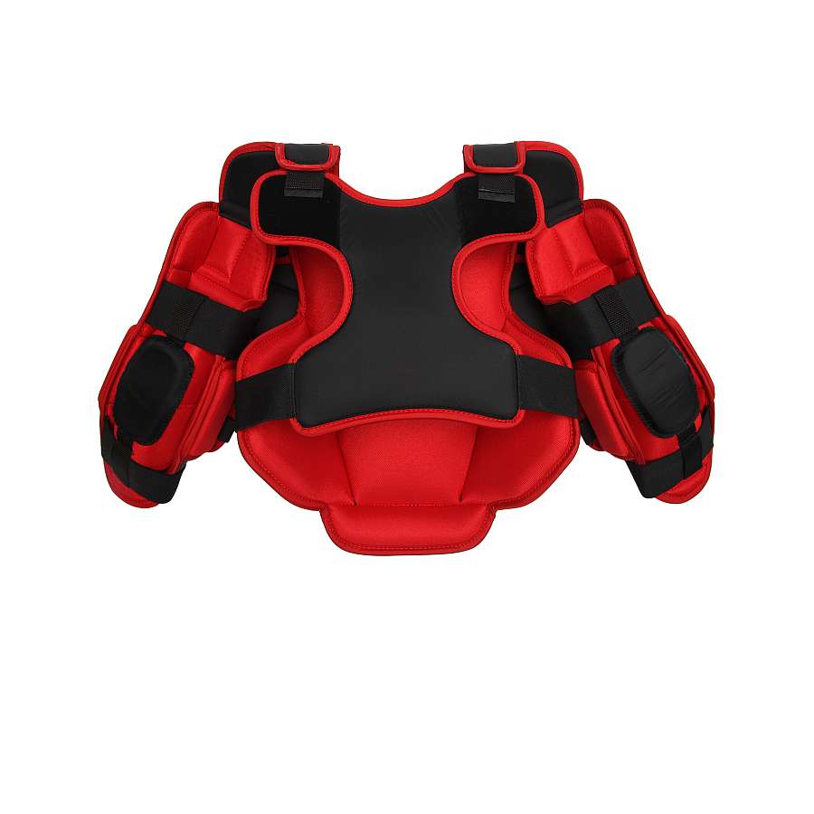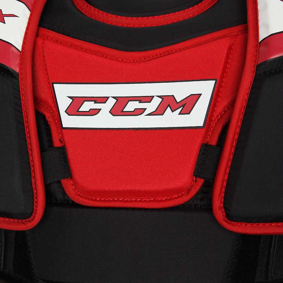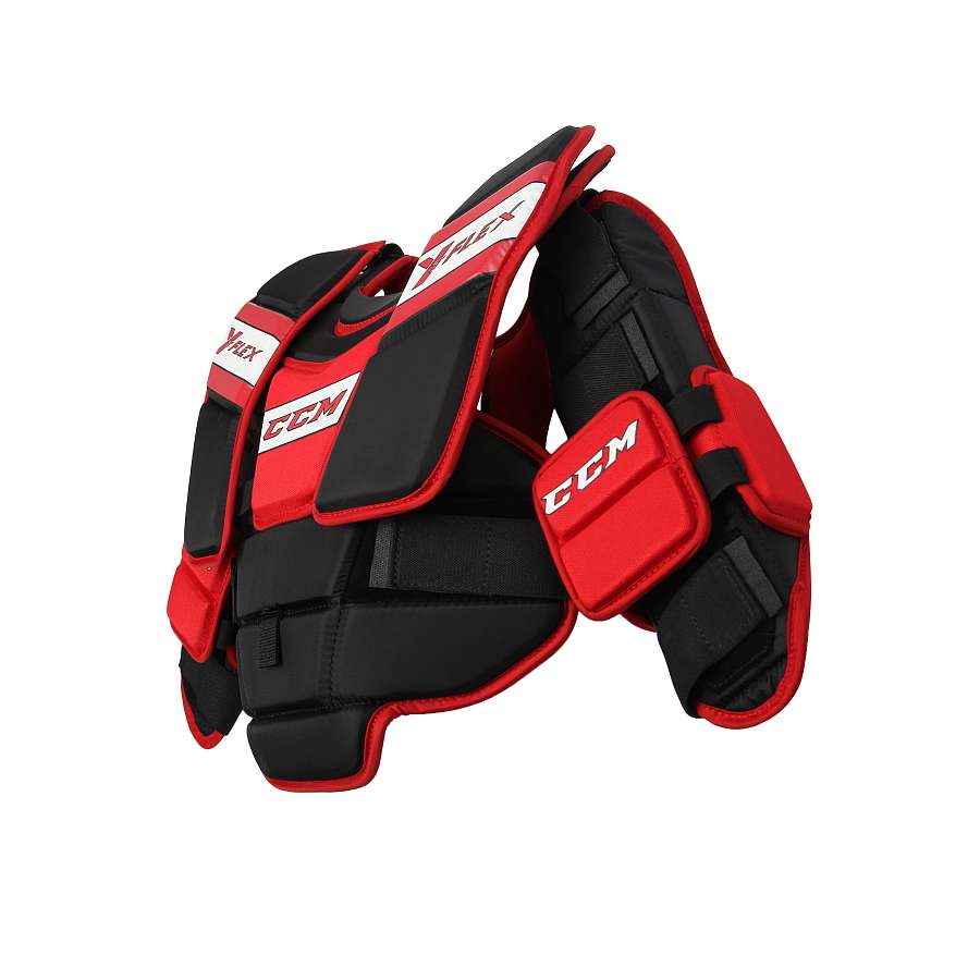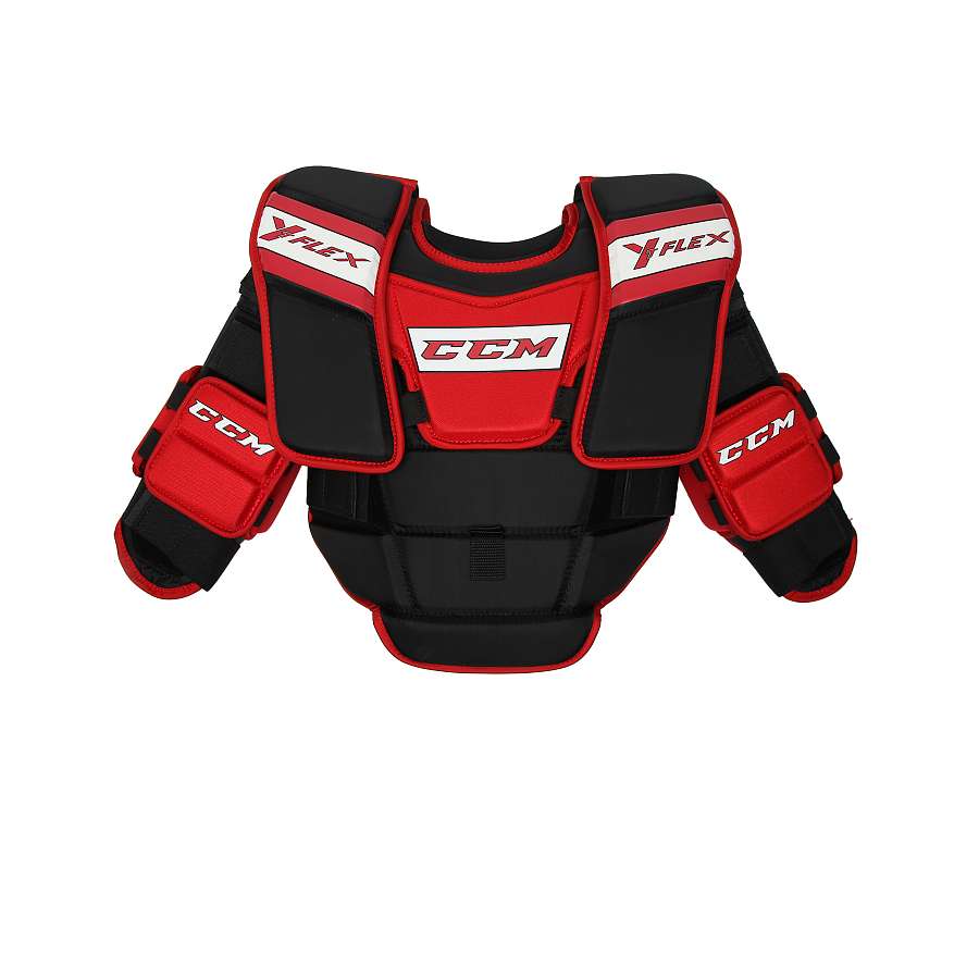 Нагрудник вратарский CCM YFLEX SERIES YTH детская модель отлично подойдет начинающим вратарям и тем, кто уже имеет некоторый опыт. Передняя панель нагрудника имеет подвижное, сегментированное строение, что позволяет маленькому вратарю легко двигаться и сгибаться. Щиток, расположенный в центре и защищающий грудину, и навесные, сегментированные элементы, закрывающие область ключиц и доходящие до нижних ребер, выполнены из пенополиэтилена, который отлично поглощает силу удара и обеспечивает надежную защиту жизненно важных участков тела. Область ребер закрыта элементами, имеющими в качестве внутреннего наполнения пену низкой плотности. Плечевые чаши выполнены из формованной пены PE и обеспечивают максимальное покрытие плечевых суставов. Элементы защиты руки имеют квадратную конструкцию, которая обеспечивает максимальное покрытие и защиту. Шарнирное соединение элементов защиты руки позволяет вратарю свободно двигаться, обеспечивая максимальную гибкость элементов защиты. Локтевая чаша выполнена из формованной пены PE, которая обеспечивает перераспределение силы удара и эффективное поглощение энергии удара. Дополнительную защиту в области локтя обеспечивают сегментированные, навесные элементы квадратной формы. Элементы защиты руки имеют регулируемую конструкцию и позволяют подобрать комфортную и правильную посадку, что в свою очередь создает оптимальный уровень защиты. Задняя панель нагрудника имеет цельную конструкцию с широким покрытием и внутренним наполнением из пены PE. Пластиковая вкладка, расположенная в центре, создает дополнительную защиту позвоночника. Нагрудник имеет полностью регулируемую конструкцию, что обеспечивает идеальную подгонку по телу маленького вратаря.
