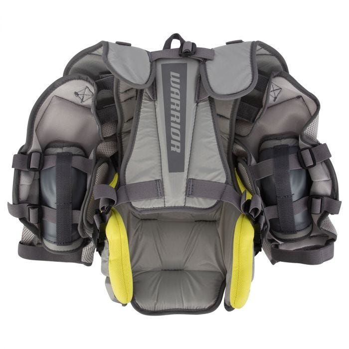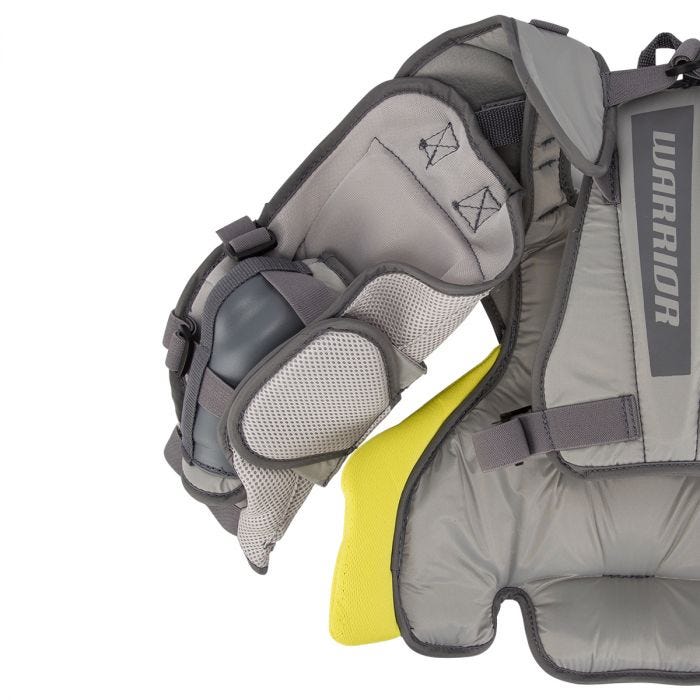 Нагрудник вратарский WARRIOR G5 YTH детская модель разработана с возможностью гибкой регулировки, чтобы маленький вратарь чувствовал себя комфортно в этом защитном снаряжении. Материалом внешней отделки является прочный и легкий нейлон и сетка, что делает защиту хорошо вентилируемой.Фронтальная панель имеет подвижную, сегментированную конструкцию, в которой центральный щиток эффективно защищает грудину. Навесные элементы обтекаемого дизайна, разделенные на сегменты, создают дополнительную защиту ключичной области и позволяют молодым голкиперам двигаться свободно и не чувствовать себя стесненными. В качестве внутреннего наполнения в защитных сегментах используется пена высокой и низкой плотности.В налокотниках предусмотрена функция полной регулировки размера, чтобы дополнительно помочь с индивидуальной подгонкой этой модели, позволяя вратарю регулировать длину каждой руки, чтобы найти идеальную посадку, которая подходит для экипировки маленького вратаря. Защита спины так же имеет возможность регулировки в области плеча.