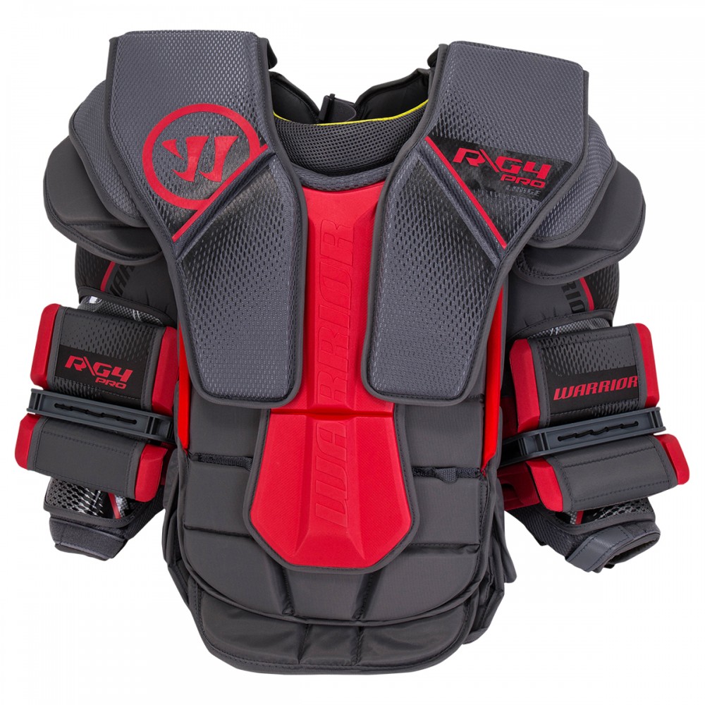 Компания Warrior Sports выпустила новинку 2018 года - это новейшая модель в своей линейке защиты груди - Ritual G4 Pro. G4 Pro имеет специальные материалы и обновленный дизайн, чтобы обеспечить ещё большую защиту без ущерба для мобильности. Начиная с визуального оформления, у G4 Pro появился новый красный цвет, чтобы продемонстрировать некоторые новые изменения. Предплечье и бицепс теперь защищает новый углеродный композитный материал HyperComp. Компания Warrior добавила свою технологию Shockshield в материал HyperComp, чтобы обеспечить более мягкий отскок, чем был у жесткого композитного материала. Shockshield - это батутный материал, уложенный под руку, который поглощает энергию удара шайбы и рассеивает ее, не отстреливая шайбу обратно в клюшку стрелка. Одним из самых больших преимуществ G4 Pro и всей линейки Ritual в целом является возможность настройки устройства. С полной регулировкой по задней части грудной клетки, а также зашиты руки, вы можете подобрать нагрудник точно по размеру.
