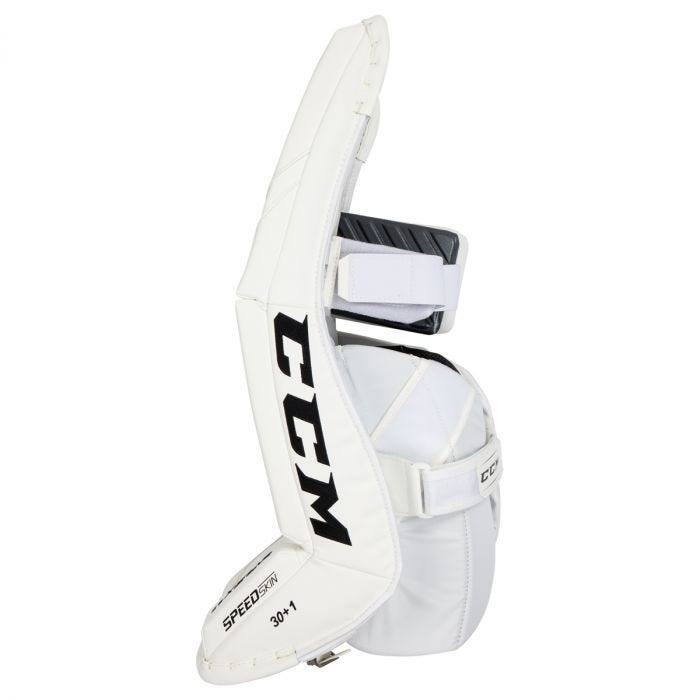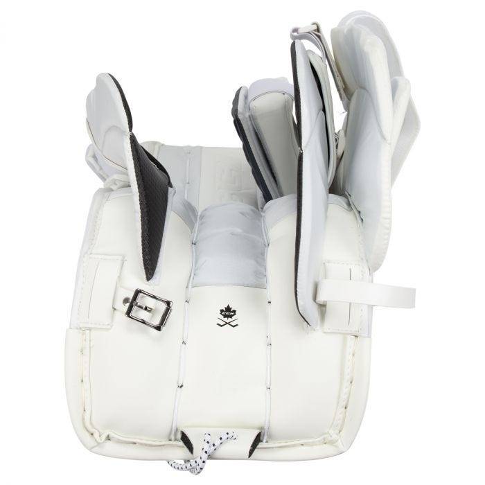 Щитки вратарские CCM EXTREME FLEX E5.9 INT подростковая модель профессионального уровня, новинка сезона 2021 года. Щитки обладают отличными игровыми характеристиками, сниженным весом и долговечностью. В данной модели используются не только более легкие материалы, но и щитки обладают отличной сбалансированностью. Высокопрочные материалы внешней отделки и технология SpeedSkin позволяют облегчить скольжение щитка на льду. В качестве внутреннего сердечника во фронтальной части щитка используется легкий материал с технологией DuaLiteCore, который позволяет щитку изгибаться и скручиваться, в результате чего облегчаются движения вратаря, когда он опускается в позицию бабочка. Более жесткая пена в защите бедра и гибкая нижняя часть щитка позволяют вратарю более эффективно и быстро двигаться, предотвращая подъем щитка в области бедра. Лицевая сторона щитков покрыта пеной высокой плотности, которая смягчает отскок шайбы. Кроме того, на лицевой стороне щитка используется совершенно новая конструкция Molded Knee Roll, которая предназначена для создания устойчивости в области колена и достижения контролируемых отскоков в этой области. Новая система фиксации Quick Motion Strapping System обеспечивает отзывчивое соединение между ногой вратаря и щитком, которое можно затянуть или ослабить в зависимости от предпочтений вратаря.