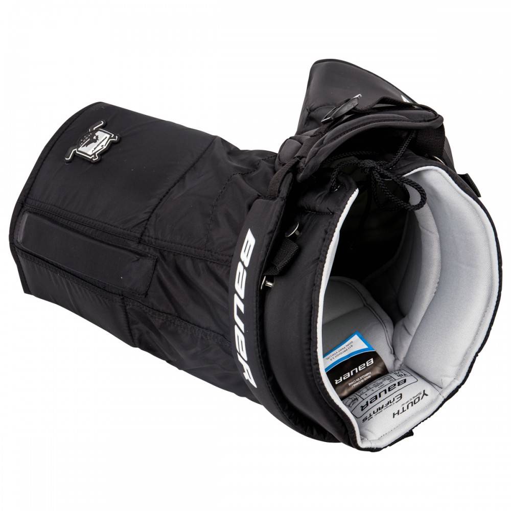 Трусы вратарские BAUER PRODIGY 3.0 S17 YTH модель сезона 2017 года обеспечивает маленьким вратарям повышенную защиту в области паха, живота и почек, сохраняя при этом отличную мобильность вратаря. Чехол трусов выполнен из высокопрочного нейлона. Основная часть всех элементов защиты выполнена из многослойной пены и усиливающих защиту пластиковых вкладок, которые будут безопасно рассеивать энергию удара. Плавающий щиток, защищающий область живота, имеет сегментированную и расширенную конструкцию. Под этим щитком начинается эластичная ластовица, которая проходит до задней части трусов вплоть до пояса, что позволяет маленькому вратарю свободно двигаться и сгибаться, и сохраняет при движениях вратаря все элементы защиты на своих местах. Элементы защиты позвоночника и копчика так же имеют пластиковые вкладки, покрытые пеной и усиливающие защиту. Элементы защиты тазобедренных суставов выполнены из формованной пены и пластиковых вкладок. Защита почек обеспечивается формованными элементами из пены, которые усилены пластиковыми вставками. Набедренные щитки выполнены из вспененного материала, армированного пластиковыми вкладышами. Наружный пояс, проложенный пеной, обеспечивает дополнительную защиту в талии. Трусы фиксируются традиционной шнуровкой и регулируемым, нейлоновым ремнем.