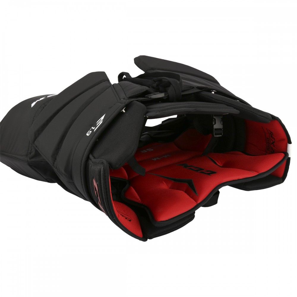 Трусы вратарские CCM EXTREME FLEX 1.9 SR взрослая модель полупрофессионального уровня имеет специально разработанный дизайн, который призван увеличить подвижность вратаря и обеспечить высокий уровень защиты. Внешняя отделка трусов выполнена из износоустойчивого нейлона плотностью 450 Den и имеет эластичные зоны, расположенные в ключевых областях для увеличения подвижности защитного снаряжения. Новая система Flex Zone имеет более высокую область талии, которая является очень гибкой, чтобы обеспечить вратарю полный диапазон движения и глубокое приседание. Сегментированная пена высокой плотности, расположенная в завышенной талии, легко изгибается, создавая хороший охват талии и надежную защиту. Область тазобедренных суставов закрыта элементами, выполненными из формованной пены. Позвоночник закрывается щитком, выполненным из пены высокой плотности. Защита копчика имеет сегментированное строение и обеспечивает высокий уровень защиты за счет использования пены высокой плотности в качестве внутреннего наполнения. Набедренные щитки выполнены из формованной пены высокой плотности и дополнены легкой пеной EPE. Закругленная форма набедренных щитков создает максимальное покрытие и обеспечивает оптимальную подвижность. Внутренний ремень, фиксирующий трусы на талии, обеспечивает плотное прилегание в сочетании повышенной мобильностью защитного снаряжения. Трусы так же фиксируются с помощью традиционной шнуровки. Скрытая застежка-молния позволяет дополнительно увеличить длину трусов на 1 дюйм (2,5 см) при необходимости.