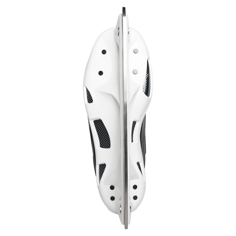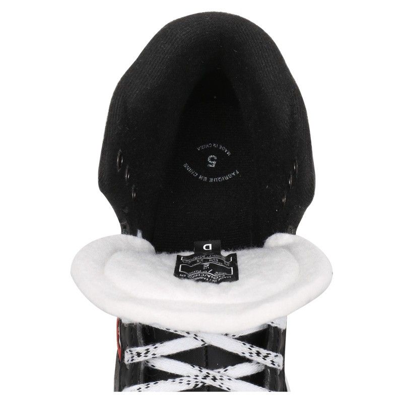 Полупрофессиональная модель хоккейных коньков CCM RBZ 70 JR выпущена для молодых вратарей и обеспечивает удобную посадку, устойчивость, надежную защиту и подвижность. Сублимированный материал Tech Mesh, из которого изготавливается внешнее покрытие ботинка в данной модели, обеспечивает жесткость и прочность ботинка. Поддержка лодыжки и пятки создается набивкой из пены, которая плотно фиксирует пятку и голеностопный сустав, увеличивая безопасность и комфорт при динамичном движении на льду. Мягкая, внутренняя подкладка выполнена из износостойкой микрофибры и отлично поглощает влагу, создавая дополнительный комфорт. Язычок с подкладкой из белого войлока плотно облегает переднюю часть голеностопа, обеспечивая дополнительный комфорт. Интегрированная в язычок, защитная вставка способствует дополнительной защите ног игрока при попадании шайбой, коньком или клюшкой, а так же более равномерному распределению давления шнуровки на подъем стопы. Новая система шнуровки Easy Tie Lacing System имеет две верхних проушины меньшего размера, которые зажимают шнурки, сохраняя тугую шнуровку. Шнурки в данной модели пропитаны воском, что обеспечивает лучшее сцепление и более плотное шнурование ботинка. Внутренняя стелька обладает хорошим свойством сцепления и исключает скольжение стопы внутри ботинка, имеет отличные теплоизоляционные свойства. Низкопрофильная, пластиковая подошва имеет несколько вентиляционных отверстий, которые способствуют быстрому удалению влаги и тепла из ботинка. Коньки оснащены стаканами Prolite G с противоударной, обтекаемой, пластиковой защитой носка и пятки, в которые вставлены лезвия из нержавеющей стали Prolite G.