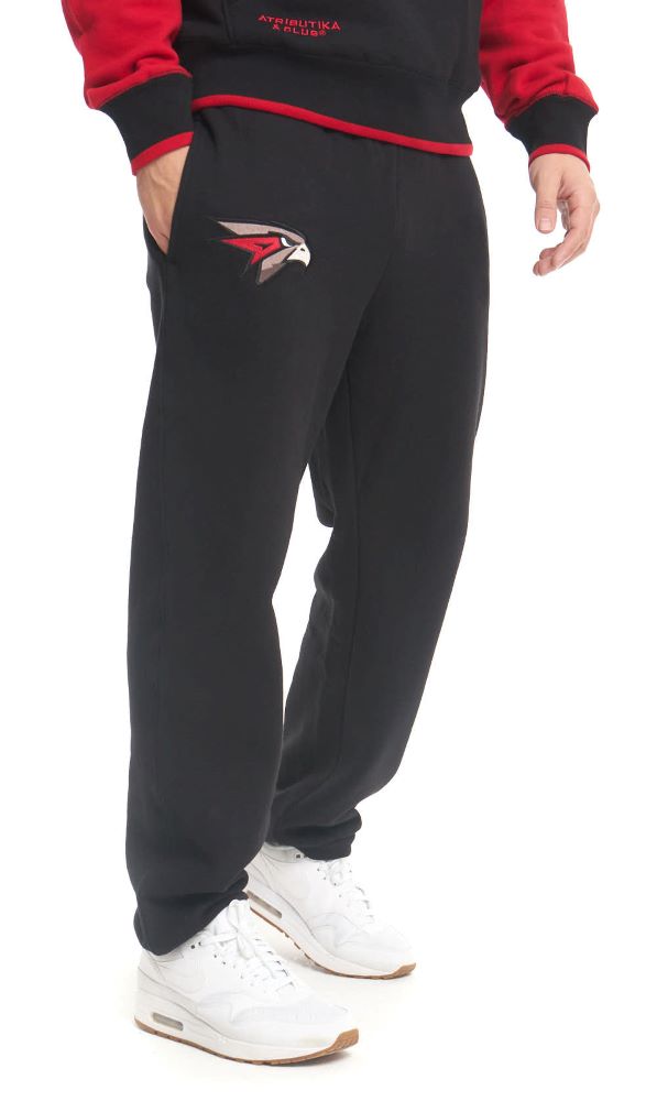 Спортивные штаны с символикой клуба. Изготовлены из плотного трикотажа с мягкой ворсистой внутренней стороной.