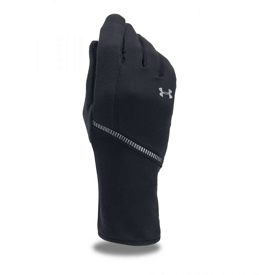 Женские перчатки из тонкого трикотажа. В ткани использована технология ColdGear Infrared, позволяющая согревать воздушный слой под перчатками и дольше оставаться рукам в тепле. Водостойкое покрытие UA Storm отталкивает дождь и снег.