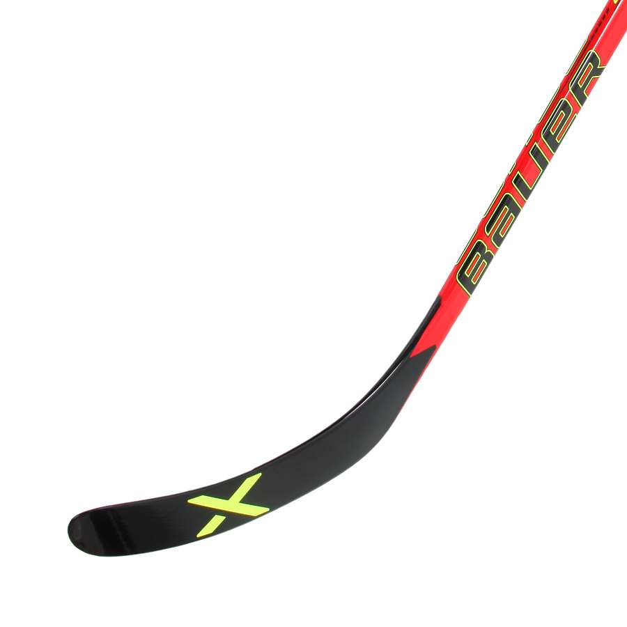 Основной акцент производитель сделал на очень яркий дизайн, который обязательно понравится детям. Клюшка выполнена из однонаправленного углеродного волокна CARBON UD, благодаря этому она имеет легкий вес и достаточно прочная. Конструкция данной модели двухсоставная. Клюшка имеет нижнюю точку прогиба и выполнена по технологии EASY RELEASE. Благодаря данной технологии клюшка легче прогибается и быстрее происходит сход шайбы с крюка, что не мало важно для начинающих хоккеистов, которые только учатся бросать. Крюк данной модели выполнен по технологии MaxBalance, за счет этого уменьшается вес клюшки.