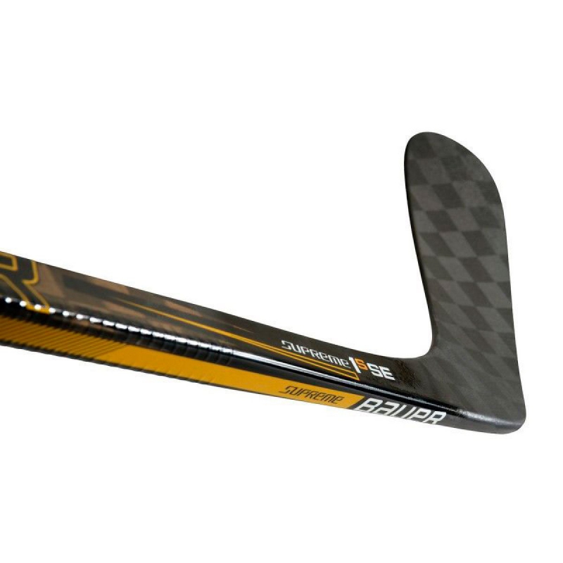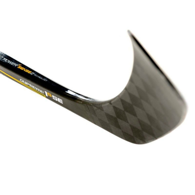 Хоккейная клюшка BAUER SUPREME 1S SE GRIP SR новая, профессиональная модель в обновленной линейке Supreme, специализированное издание, выпущенное для европейского рынка и отличающееся повышенной прочностью. Клюшка имеет монолитную конструкцию True One-Piece, что достигается благодаря производственному процессу компрессионной формовки, который выполняется по технологии Monocomp. В результате чего удаляются перекрывающиеся слои материалов, уменьшается вес клюшки и улучшается ее сбалансированность. При изготовлении этой модели применяется эксклюзивное, карбоновое волокно, имеющее фирменное плетение TeXtreme. Результатом использования данного материала является снижение веса при сохранении традиционной высокой прочности клюшки. Защиту поверхности трубы от образования и распространения трещин обеспечивает специальное покрытие с добавлением эпоксидной смолы, созданное по технологии eLASTech и представляющее собой сетку из нанотрубок. В данной модели реализована новая технология Maximum Power Kick, которая способствует максимальной передаче энергии от рукоятки к крюку. За счет жесткой нижней трети трубы средняя точка прогиба High Mid Kick Point сместилась выше вдоль трубы, благодаря чему оптимизируется передача энергии, увеличивается жесткость при кручении крюка, позволяя получить более мощный бросок. Труба имеет прямоугольное сечение со слегка вогнутыми боковыми стенками и прямыми углами, благодаря чему снижается вероятность поворота клюшки в руках и увеличивается передача энергии шайбе и ее разгон. Противоскользящее покрытие Tactile Grip, нанесенное на трубу, обеспечивает надежных хват при мощных бросках. Текстурированное покрытие Tac-Spiral имеет новую высоту ребра и расстояние между ребрами, а так же покрывает больший участок. Крюк, выполненный по технологии PowerSense 2, имеет дополнительный слой Sense, который расположен по периметру крюка и интегрирован в его конструкцию, что придает крюку высокую прочность, а так же усиливает чувство шайбы и контроль над ней, увеличивает передачу энергии от клюшки к шайбе, обеспечивая высокую точность бросков. Внутренний сердечник крюка Power Sense Core 2 обеспечивает превосходное чувство шайбы, отличный баланс. Пена Aero Foam 3, находящаяся в пятке крюка обеспечивает стабильность. Профиль крюка Pure Shot предотвращает раскрытие крюка и его скручивание при бросках. Внешнее покрытие крюка выполнено из тканого, углеродного волокна 12k.