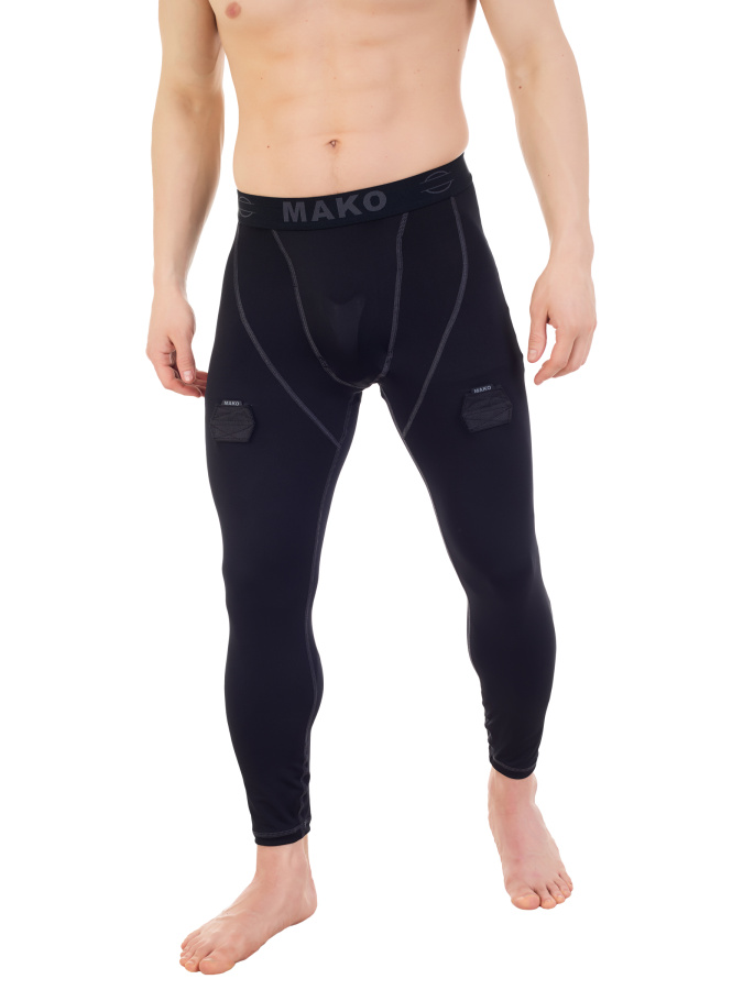 КОМПРЕССИОННЫЕ БРЮКИ С РАКУШКОЙ МАКО - идеально подходит для интенсивных тренировок на льду Мужские компрессионные брюки с защитной раковиной и липучками для гамаш, анатомической плотной посадкой на теле. Дополнительную фиксацию брюкам обеспечивает широкий эластичный пояс. Материалы: высококачественные материалы предоставляют комфортный контакт с кожей и не вызывают раздражения, а плоские швы исключают эффект натирания, эффективно испаряет влагу, сохраняя тело практически сухим, что позволяет двигаться в белье свободно и естественно. Компрессия: способствует улучшению кровоснабжения тканей, повышает работоспособность, снижает вероятность получения травм и обеспечивает более быстрое восстановление после интенсивных нагрузок. Состав: полиэстер 100%