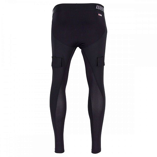 Бандаж-брюки WARRIOR COMPRESSION TIGHT имеют плотную посадку и обладают свойством компрессии, благодаря чему улучшается кровоснабжение, снижается вибрация мышц, обеспечивается их поддержка. В результате происходит более быстрое восстановление после физических нагрузок, снижается усталость и обеспечивается дополнительный комфорт. При этом брюки не ограничивают движений игрока. Высокий пояс с завышенной задней частью плотно фиксирует брюки на талии. Сетчатые вставки обеспечивают необходимую вентиляцию. Плоские швы, соединяющие детали кроя, не травмируют кожный покров. Брюки имеют интегрированную защиту области паха. Защитная чаша выполнена из жесткого ABS-пластика и имеет мягкую окантовку по периметру, что обеспечивает комфортное прилегание и исключает травмирование. На штанинах расположены липучки для фиксации хоккейных гетр. Брюки выполнены из синтетического материала Wartech FnC, имеющего в своем составе 80% полиэстера и 20% спандекса.