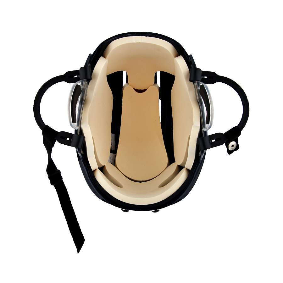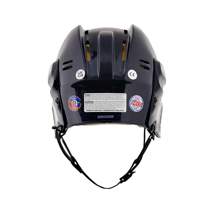 Шлем хоккейный полевого игрока BAUER 4500 модель полупрофессионального уровня обладает удобной, надежной посадкой и гарантирует эффективную защиту. Два ребра жесткости, проходящие вдоль верхней части корпуса, увеличивают его пространственную жесткость. Вентиляционные отверстия в корпусе обеспечивают приток воздуха к голове игрока. Пластиковый корпус с внутренней стороны выстлан вспененным материалом VN двойной плотности, который не только обеспечивает комфортное прилегание шлема к голове игрока, но и отлично поглощает энергию удара, эффективно защищая голову игрока. Эргономичные, полупрозрачные, плавающие амбушюры способствуют защите ушей и дополнительному комфорту. Регулировка размера и подгонка по форме головы производится с помощью инструмента за считанные секунды. Шлем соответствует требованиям стандартов CSA, HECC, CE и совместим с большинством защитных масок и визиров.