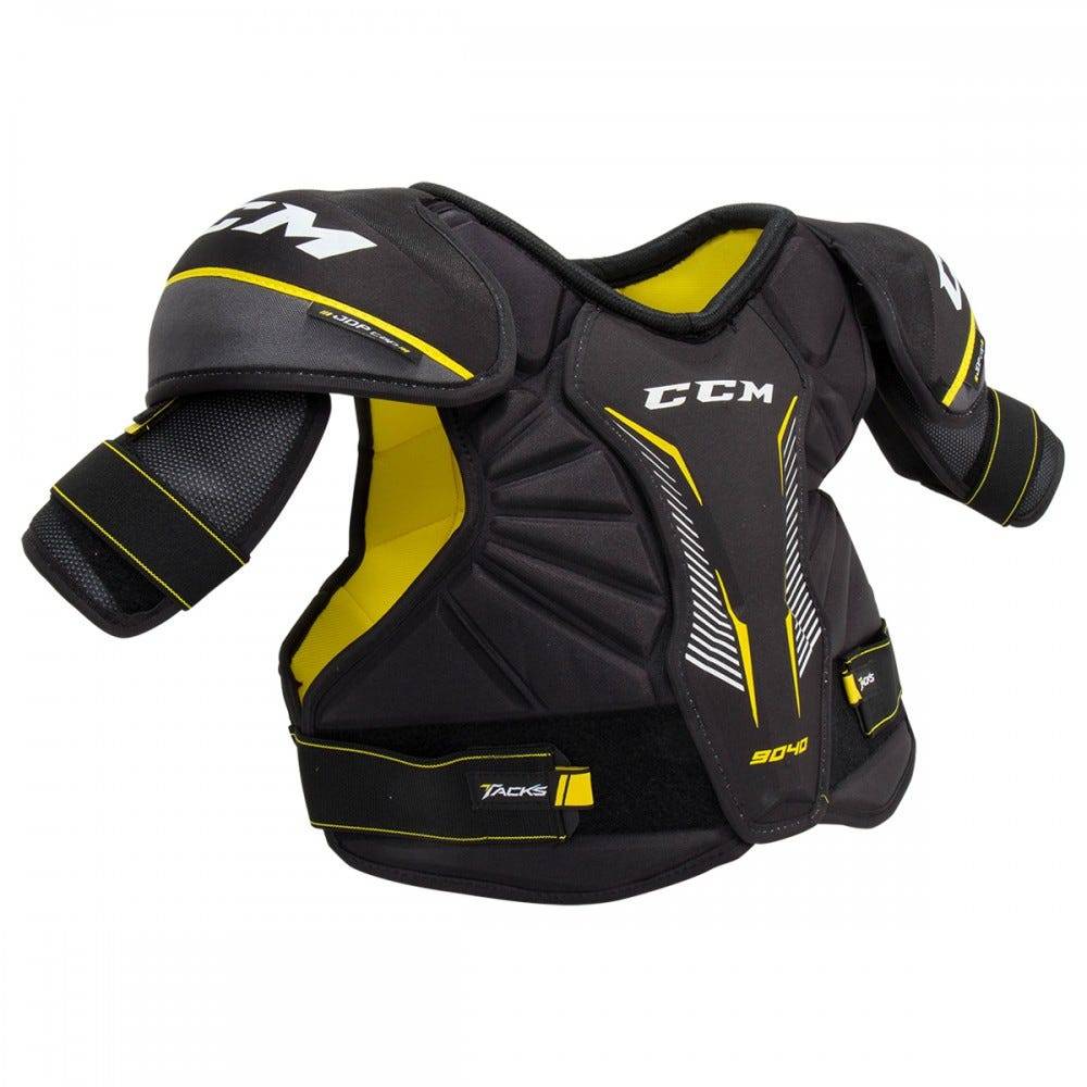 Нагрудник хоккейный CCM TACKS 9040 YTH (детская модель) предназначен для начинающих игроков. Нагрудник оснащен мобильной трех секционной передней панелью, обеспечивая лучший охват и эффективную защиту жизненно важных областей тела. Защиту грудины обеспечивает плавающий, усиленный щиток. Защита позвоночника обеспечивается плавающей, усиленной вставкой. Боковые панели, как на фронтальной панели, так и на задней, выполнены из пены средней плотности, которая хорошо справляется с рассеиванием энергии удара. Плечевые чаши из формованного пластика анатомической формы выполнены с применением технологии Joint Dispersion Protection (JDP), которая позволяет перераспределять силу удара, уменьшая его воздействие на суставы. Кроме того плечевые чаши имеют дополнительный армирующий слой из пены, как на внешней стороне, так и внутри, что позволяет лучше рассеивать