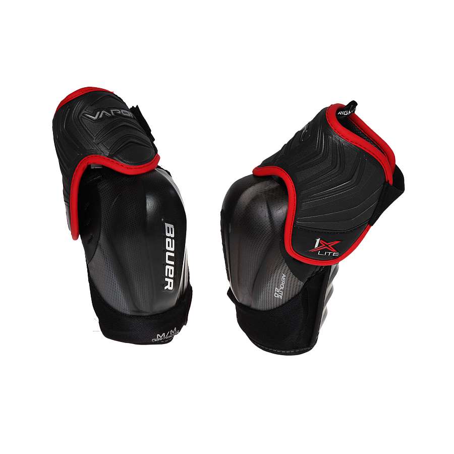 Налокотники хоккейные BAUER VAPOR 1X LITE S18 SR (взрослые) флагманская модель в линейке Vapor, новинка сезона 2018 года. Налокотники имеют легкую, подвижную конструкцию и гарантируют профессиональный уровень защиты. Налокотники имеют двухсоставную конструкцию, в которой плавающий элемент защиты бицепса имеет сегментированное строение и выполнен из легкой пены HyperLite. Пластиковые вкладки, расположенные в элементе защиты бицепса, усиливают защитные свойства пены. Защита предплечья и локтевая чаша имеют односоставную конструкцию, где для защиты предплечья используется композитный материал Curv, который обладает высокой прочностью, легкостью, создавая невесомую и надежную защиту. Локтевая чаша выполнена с использованием нового поколения легкой пены Aerolite 2.0. Посадочное место в локтевой чаше комфортно фиксирует локтевой сустав, исключая его смещение. В качестве внутренней подкладки используется гидрофобный материал с технологией 37.5, которая позволяет использовать тепло тела для быстрого испарения влаги.