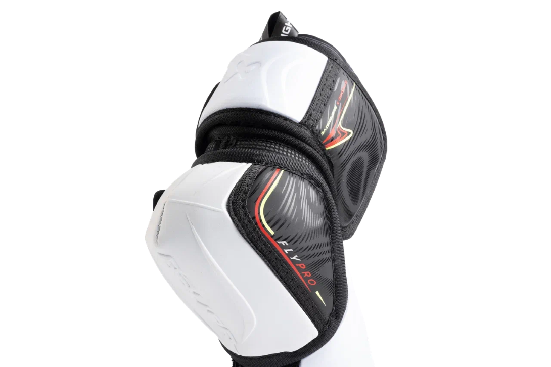 Налокотники VAPOR FLYPRO имеют зауженный дизайн, который помогает придать более обтекаемый вид, защищая от случайных порезов или ударов. Кроме того, благодаря глубоко прилегающему налокотнику они ощущаются как часть тела. Налокотник прилегает глубже и обхватывает предплечье на 360 градусов, что обеспечивает комфортную посадку и надежно фиксирует накладки на месте. Для юных игроков интегрированная система нарукавников обеспечивает дополнительный комфорт и стабильность.