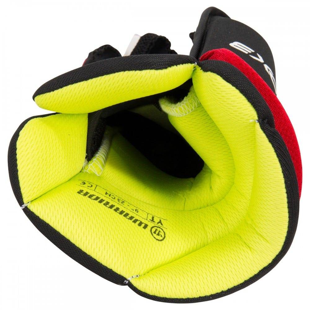 Перчатки хоккейные WARRIOR ALPHA DX3 YTH абсолютно подходят для маленьких игроков, которые только начинают играть в хоккей. Данная модель предлагает обширную защиту всей руки, а так же отличную подвижность. Посадка перчаток Hybrid Traditional Fit обеспечивает достаточный объем в области пальцев и манжеты с плотной посадкой на тыльной части. Сегментация в манжете обеспечивает лучшую подвижность запястья при сохранении надлежащей защиты на месте. Корпус перчатки выполнен из дышащего и гибкого нейлона TuffTek 2.0, пальцы и манжета выполнены из вязаной, нейлоновой сетки DynaMesh, которая отлично противостоит износу и способствует хорошей вентиляции перчаток. Большой палец накрыт и защищен твердым, формованным пластиком на случай, если шайба или клюшка попадут по руке, а также защищает от вывихов. Пальцы имеют разрезку на два защитных сегмента. В качестве защитного наполнения в этой модели используется легкая пена EVA средней плотности, которая толстым слоем располагается во всех защитных сегментах.