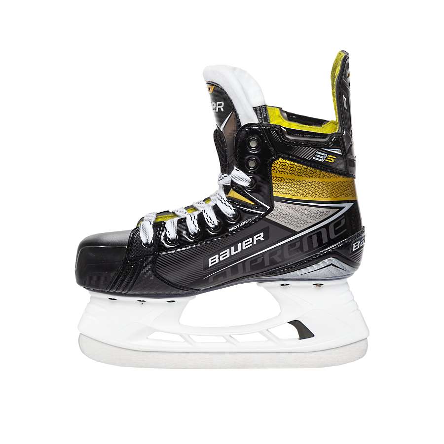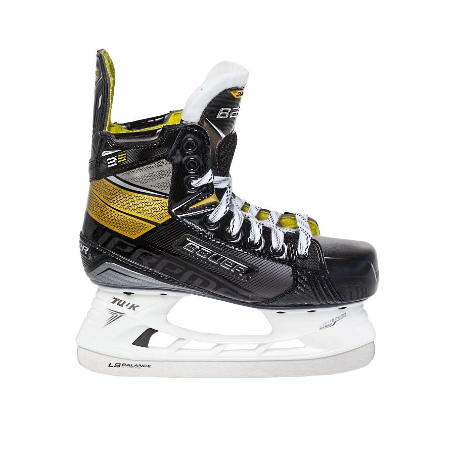 Новинка сезона 2020 года - хоккейные коньки Bauer Supreme 3S JR. Данная юношеская модель подойдет опытным игрокам, которым нужен дополнительный комфорт. Коньки имеют анатомическую посадку и новую систему Performance Fit, благодаря чему обеспечивается идеальная посадка для игроков с различной шириной стопы и различной высотой подъема. Композитный ботинок выполнен из материала Flex Composite, который отличается легким весом и упругостью. В сочетании с подошвой Pro TPU обеспечивается дополнительная жесткость в нижней части ботинка, которая отвечает за передачу энергии во время движения вперед. Новый угол шнуровки Power Boot Cut рассчитан для увеличения фиксации ступни и дополнительной поддержки. Внутренний язычок имеет войлочное покрытие плотностью 48 oz. Лезвие LS PLUS с профилем Quad Profile выполнены из нержавеющей стали, отлично сохраняют заточку, имеют уникальный радиус, который создает большую контактную поверхность со льдом, лучшую стабильность наряду с повышенной скоростью и маневренностью.