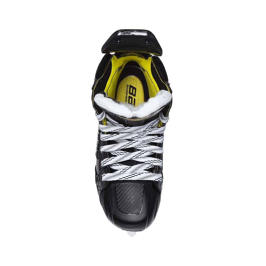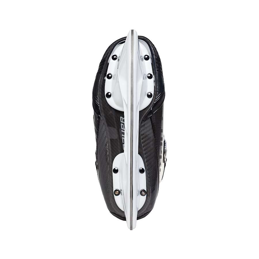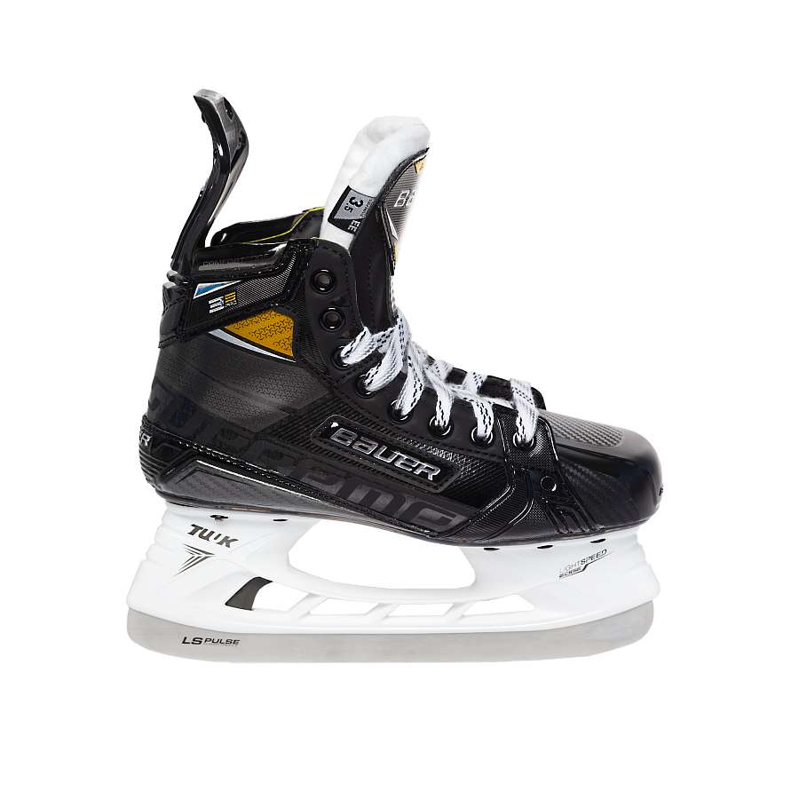 Коньки хоккейные полевого игрока BAUER SUPREME 3S PRO JR юношеская модель профессионального уровня. Ботинки имеют термоформируемый верх, который после процедуры термоформовки точно повторяет анатомические контуры стопы, создавая плотную посадку и оптимальную поддержку и устойчивость. Новая асимметричная конструкция носка ботинка создает минимальное свободное пространство между ногой и стенкой ботинка, делая прилегание более плотным и удобным. Материалом внешней отделки корпуса ботинок является легкий и прочный композит 3D-Lasted Curv Composite. Область лодыжки плотно фиксируется в ботинке с помощью внутренних вкладок, выполненных из легкой пены AeroFoam +, обладающей эффектом памяти, в результате чего устраняется негативное пространство между ногой и стенками ботинка, обеспечивается необходимая устойчивость и комфортная посадка. Внутренняя, двузонная подкладка отличается высокой износоустойчивостью. Внутренний язычок плотно охватывает переднюю часть голеностопного сустава, имеет футеровку, выполненную из белого войлока плотностью 52oz и гибкую защиту сухожилий Reflex Tendon Guard, которая позволяет увеличивать ширину шага, помогая ноге возвращаться в исходное положение. Внутренняя стелька Lock Fit исключает скольжение стопы внутри ботинка, что способствует более эффективной передаче энергии при движении. Подошва выполнена из легкого, композитного материала. На ботинках установлены стаканы Tuuk LightSpeed Edge, которые имеют завышенную на 3 мм по сравнению с традиционными стаканами переднюю и заднюю стойку. Такая конструкция стаканов позволяет увеличивать угол атаки и уменьшать радиус разворота, что в результате повышает маневренность игрока. В данных стаканах так же имеется система быстрой замены лезвий Trigger Spring, которая дает возможность быстро заменить поврежденное или сломавшееся лезвие в течении считанных секунд. Новые лезвия LS Pulse выполнены из высококачественной стали со значительно более стабильной конструкцией. Лезвия имеют Quad-профиль Pro Sharp для лучшего контакта со льдом и создания общей стабильности.