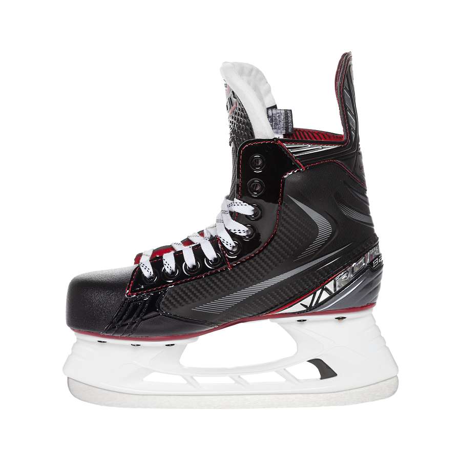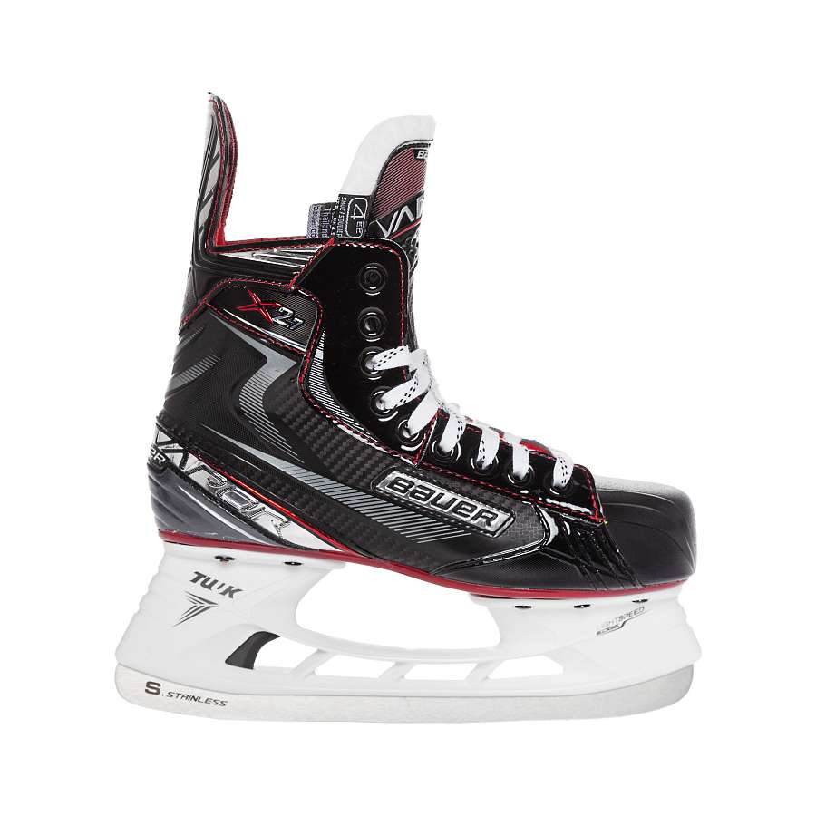 Юношеские коньки Bauer Vapor X 2.7 предназначены для любителей и профессиональных игроков в хоккей. Корпус ботинков выполнен из прочного нейлона, стакан и лезвие изготовлены из устойчивой к ржавчине стали TUUK Lightspeed Pro, а для подошвы используется термоэластопласт двойной плотности.Удобная посадка – верхняя часть усилена дополнительными ребрами жесткости Х-образной формы.