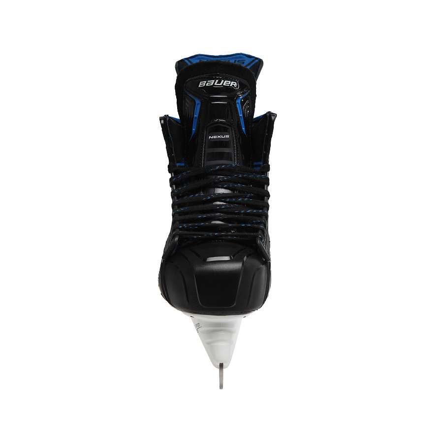 Коньки хоккейные BAUER NEXUS 1N SR топовая модель в обновленной линейке Nexus. Композитный материал Premier 3D-Lasted Curv формирует верхнее покрытие ботинок, придавая ботинку профессиональную жесткость. Благодаря уникальным свойствам этого композитного материала, он так же является одним из самых легких и термоформируемых материалов на рынке. В результате ботинок плотнее облегает ногу игрока, более плотно фиксирует ее в области лодыжки и пятки, обеспечивая удобную посадку, способствуя быстрому разгону и маневренности. Накладки Total Edge Comfort, расположенные в верхней части, устраняют натирание ноги краем ботинка, которое может возникнуть при агрессивном катании в жестких ботинках. Интегрированная система шнуровки Stability Lacing System имеет цельную с ботинком конструкцию, за счет чего уменьшается вес ботинка, увеличивается его прочность, а так же передняя часть ботинка становиться более гибкой, при этом ноге обеспечивается большая устойчивость. Внутренняя обивка в области голеностопного сустава выполнена из легкой пены, которая обладает эффектом памяти, что гарантирует удобную посадку, уменьшает негативное пространство вокруг лодыжки. Гибридный язычок Form-Fit Lite имеет легкую конструкцию, которая создает отличную защиту и комфорт профессионального уровня. Внутренняя футеровка язычка выполнена из черного войлока плотностью 52 и 40унций. В отличие от предыдущих моделей линейки Nexus, язычок в ботинке 1N имеет композитную вставку Curv вместо пластиковой для создания легкой и эффективной защиты плюсневой кости. Внутренняя стелька Speed Plate с технологией Ortho-resin выполнена из термопласта и после процедуры термоформовки точно соответствует форме стопы и нижней части ботинка, обеспечивая удобное положение стопы внутри ботинка. Стелька обеспечивает поддержку свода стопы и надежно фиксирует пятку за счет удобной формы пяточной чаши. Использование этой стельки так же позволило улучшить передачу энергии при движении, повысить маневренность хоккеиста. Жесткая, легкая, композитная подошва ботинка снабжена вентиляционными отверстиями, которые обеспечивают быстрый отвод тепла и влаги от стопы. Внутренняя подкладка из износостойкого полиэстера выполнена с использованием технологии 37.5, которая позволяет использовать тепло тела для быстрого удаления влаги, обеспечивая ногам комфортное состояние при активном движении. На коньки крепятся стаканы Tuuk LightSpeed Edge с инновационной системой быстрой замены лезвия Trigger System. Задние и передние стойки в этой модели стакана на 3 мм выше, чем у стандартных, что обеспечивает более агрессивный радиус поворота. Нержавеющие лезвия Tuuk LightSpeed LS4 в стаканах выполнены из высококачественной стали, которая на 10% тверже, применяемой в лезвиях LS3, отлично держит заточку.