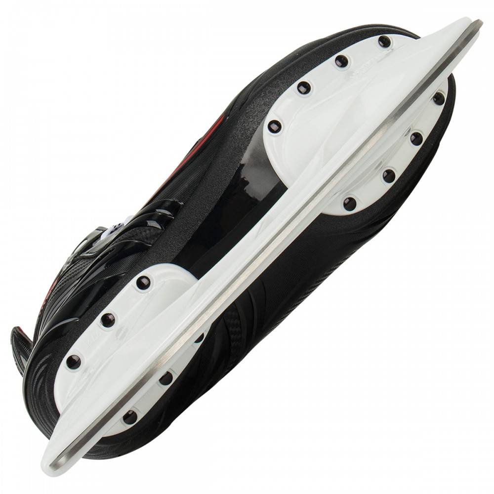 Коньки из новой линии NSX от Bauer - универсальная модель для новичков. В этих коньках можно как играть в хоккей, так и просто кататься на катке. Стакан LS PRO с поднятой пяткой и впрессованными лезвиями для меньшего угла поворота и быстрого набора скорости. Анатомический ботинок из композитного материала, изготовленный методом горячего прессования. Анатомический язык из искусственного войлока, укрепленный слоем из полиуретана. Внутренние элементы из облегченной пены в области лодыжки и стелька из ЭВА для удобной посадки. Подкладка из микрофибры. Новый композитный материал значительно снижает вес коньков.