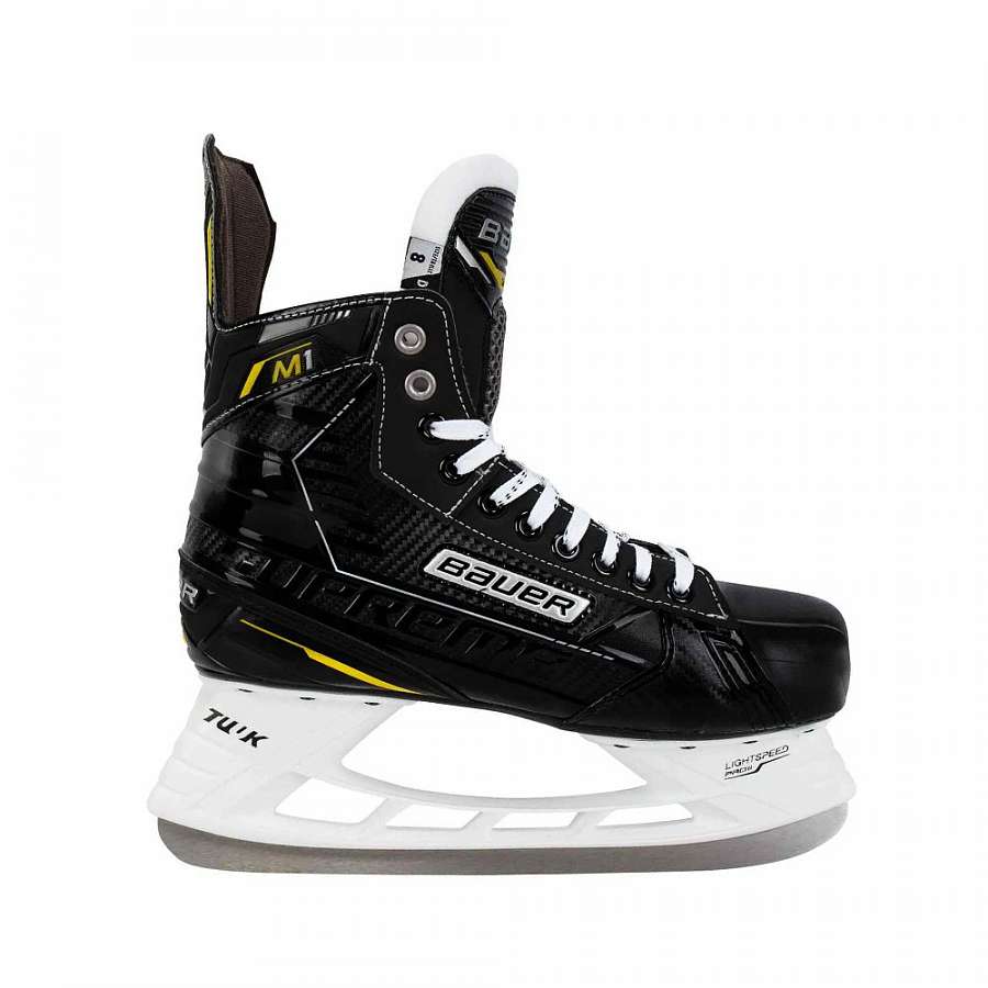 Supreme M1 — это переходный этап для игроков-любителей, начинающих инвестировать в хоккей. Благодаря обновленному 13-футовому профилю, улучшающему баланс, эти легкие коньки обеспечат комфорт и уверенность действий новых игроков благодаря элементам, взятым от коньков серии Supreme. Мы создаем наши коньки начального ценового уровня с немного более широкой колодкой и более удобными подушечками для лодыжек, чтобы начинающим игрокам было проще адаптироваться в новым конькам.