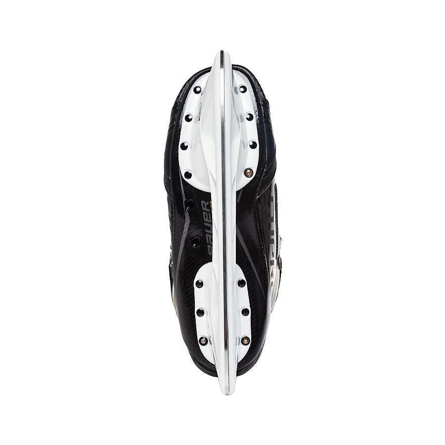 Коньки хоккейные полевого игрока BAUER SUPREME ULTRASONIC SR флагманская модель в обновленной линейке Supreme. Композитный ботинок выполнен из материала Carbon Curv, который обладает высочайшими эксплуатационными характеристиками, долговечностью и способностью к термоформованию. Это наилучшее предложение от Bauer на сегодняшний день. Кроме того в данной модели используется технология Unibody Outsole, которая предполагает интеграцию подошвы и ботинка, что обеспечивает лучшую передачу энергии за счет увеличения жесткости в нижней трети корпуса. В данной модели присутствует новая система Performance Fit System, которая обеспечивает идеальную посадку игрокам с различной шириной стопы и различной высотой подъема. Новая асимметричная конструкция носка ботинка создает минимальное свободное пространство между ногой и стенкой ботинка, делая прилегание более плотным и удобным. Внутренний язычок Reflex Pro с внутренней футеровкой из войлока и гибкая защита сухожилий Reflex Tendon Guard обеспечивают улучшенную подвижность в голеностопном суставе, позволяя увеличивать ширину шага, помогая ноге возвращаться в исходное положение. В верхней части ботинок расположены накладки Comfort Edge, которые предотвращают травмирование кожного покрова ноги жестким, верхним краем ботинка, создавая необходимый комфорт. Область лодыжки плотно фиксируется в ботинке с помощью внутренних вкладок, выполненных из легкой пены AeroFoam Pro, обладающей эффектом памяти, в результате чего устраняется негативное пространство между ногой и стенками ботинка, обеспечивается необходимая устойчивость и комфортная посадка. Внутренняя, двузонная подкладка отличается высокой износоустойчивостью. Внутренняя стелька Lock-Fit обладает оптимальной цепкостью и исключает любое проскальзывание стопы внутри ботинка при движении, что способствует более эффективной передаче усилия при движении. Коньки укомплектованы стаканами Tuuk LightSpeed Edge. Конструкция стаканов с увеличенными на 3 мм передними и задними стойками позволяет увеличивать угол атаки и уменьшать радиус разворота, в результате чего повышается маневренность игрока. В данных стаканах так же имеется система быстрой замены лезвий Trigger Spring, которая дает возможность быстро заменить поврежденное или сломавшееся лезвие в течении считанных секунд. Новые лезвия LS Pulse Ti Edge выполнены из стали премиум-класса и имеют новое титановое покрытие для обеспечения идеального скольжения, удержания кромок и увеличения срока службы заточки. Профиль Quad Profile создает лучшую стабильность и баланс без ущерба для маневренности.