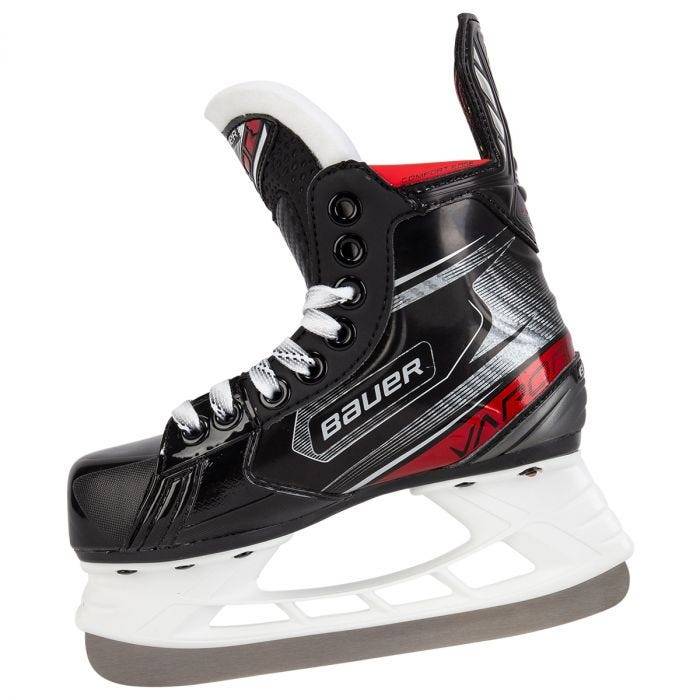 Детские коньки Bauer Vapor 2X YTH предназначены для младшей возрастной группы юных спортсменов, только начинающих свой путь в хоккее. Обувь плотно сидит на ноге, надежно фиксирует голеностопный сустав и предупреждает риск случайного травмирования во время динамичной игры. Комфорт и устойчивость на льду – анатомическая форма колодки, гибкий войлочный язычок Recoil Tongue, интегрированная пяточная чаша.Оптимальный микроклимат – внутренняя подкладка из мягкой микрофибры в сочетании с верхом из прочного дышащего нейлона.Удобная посадка – усиление термоформируемого верха крестообразными ребрами жесткости и вспененная стелька Lock-Fit