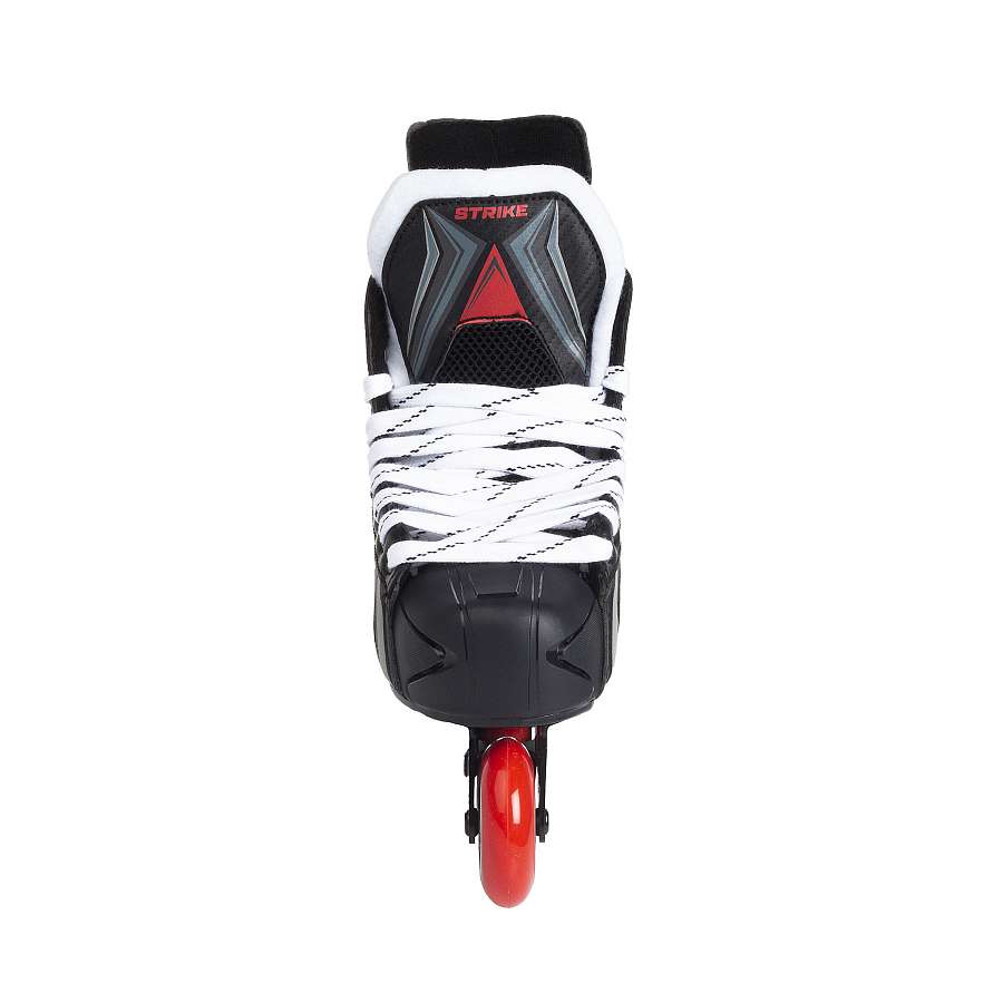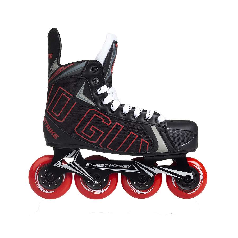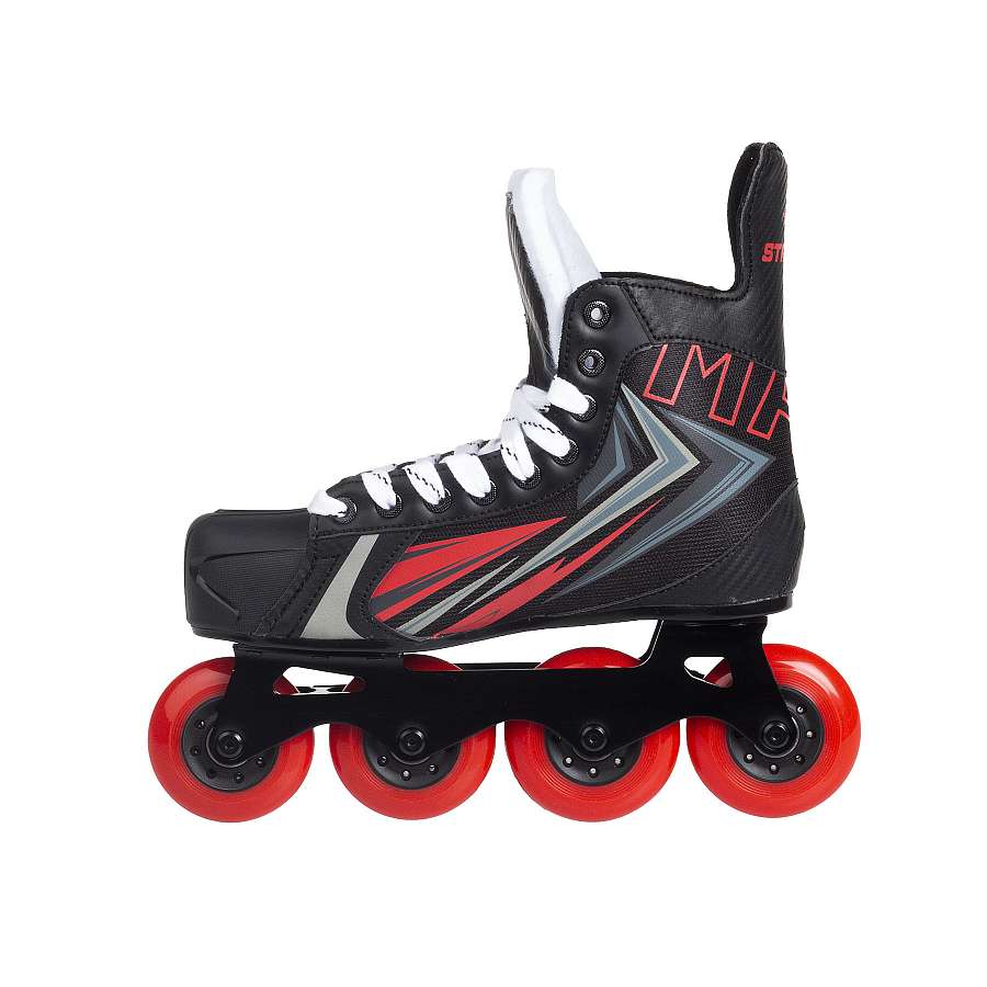 Роликовые коньки для игры хоккей на роликах. Отлично подходят игрокам, которые играют даже в межсезонье! Ботинок выполнен из легкого композитного материала, что отвечает за легкость и прочность конька. Войлочный язык полностью закрывает переднюю часть голеностопа и защищает ее от ударов и любых других внешних физических факторов. Ботинок плотно сидит по стопе, обеспечивая комфорт и безопасность во время игры. Носок дополнительно защищен вставками, чтобы исключить травмы пальцев ног.